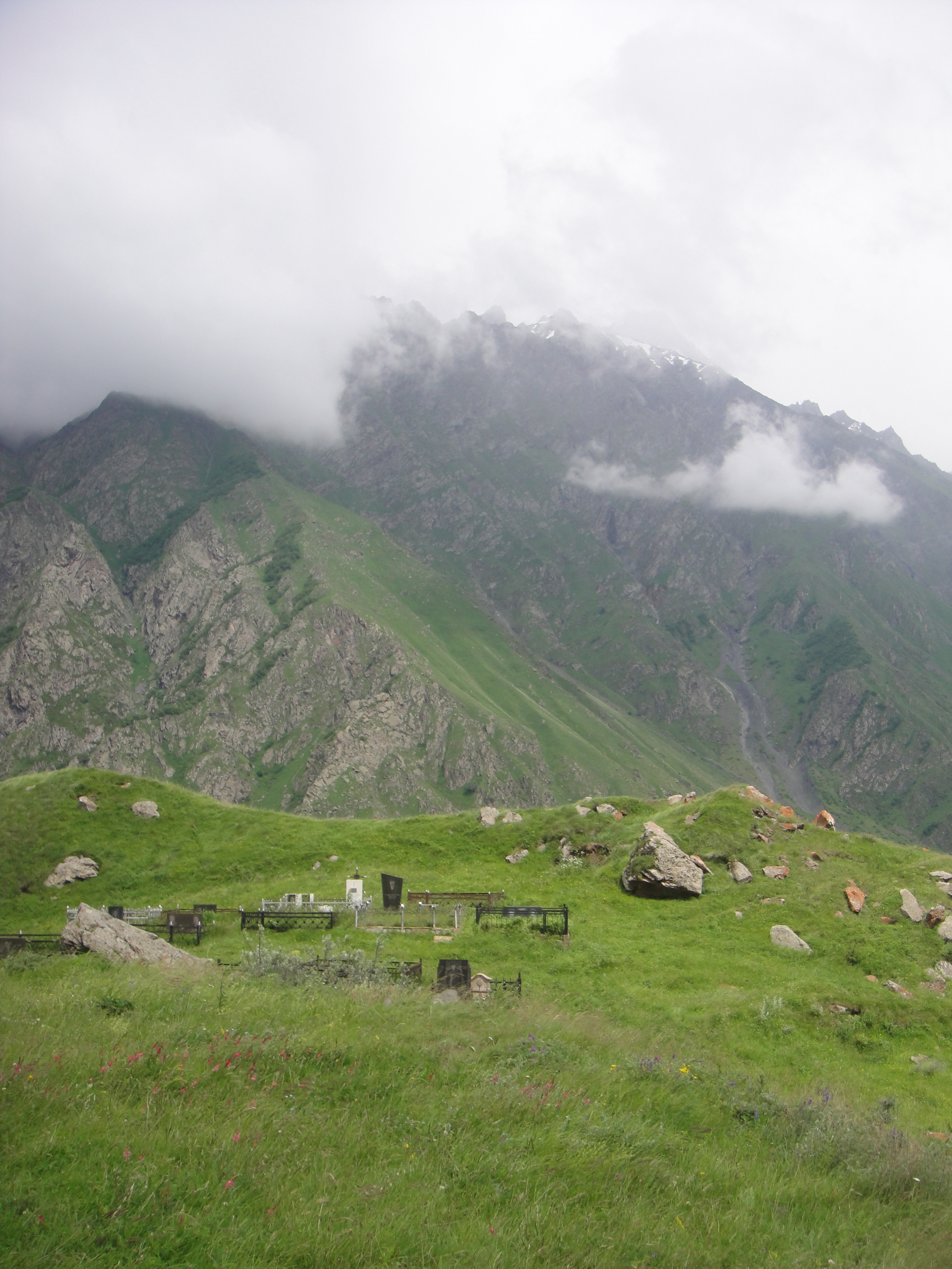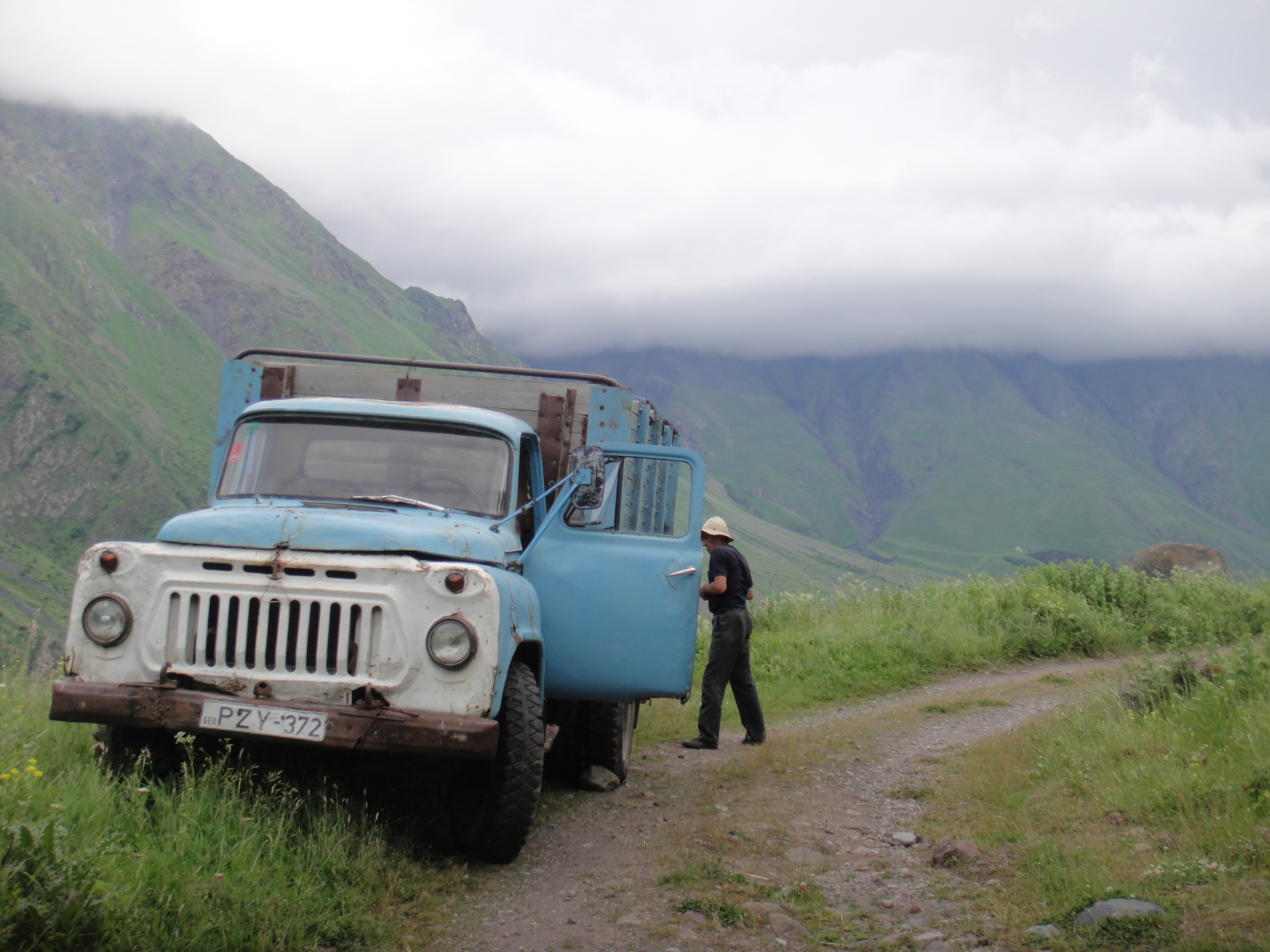 After following the Georgian Military Highway to the Russian border, my Italian interpreter and I felt like stretching our legs a little after so much driving. I stopped at a crude dirt track leading up into the mountains of the Caucasus and we decided to hike up the road to see where it went.