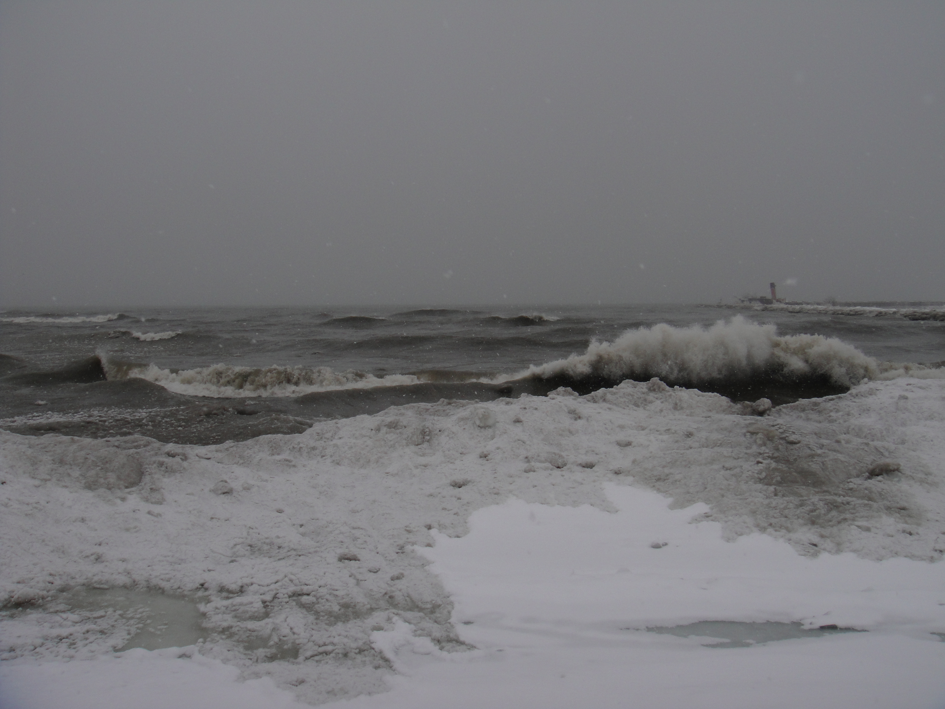 The morning was stormy. Howling winds whipped the water up and drove flurries of snow in all directions: