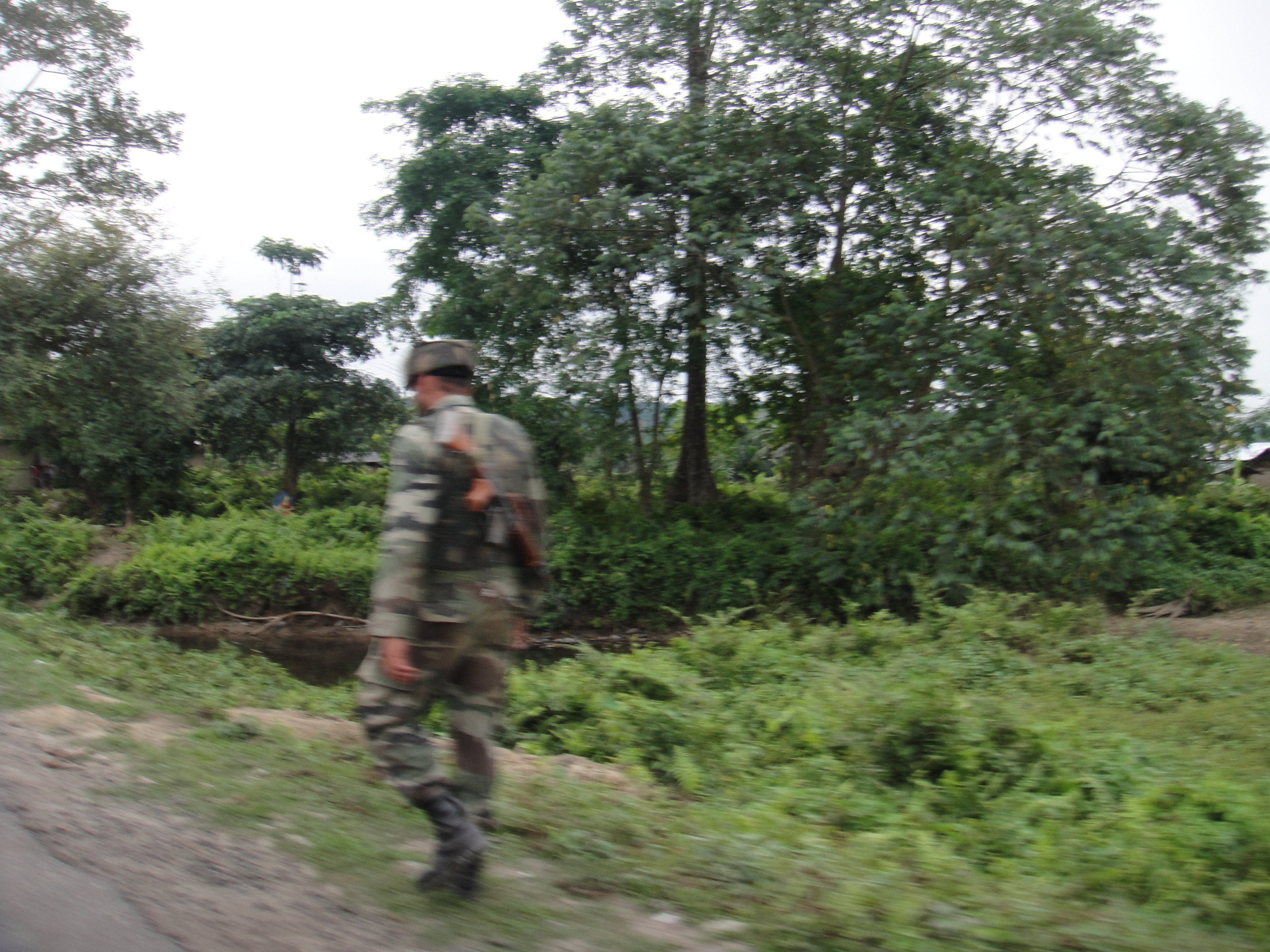 As such, there are a staggering number of Indian Army troops patrolling the road through Bodoland. In many places, the patrols are as close as fifty meters apart: