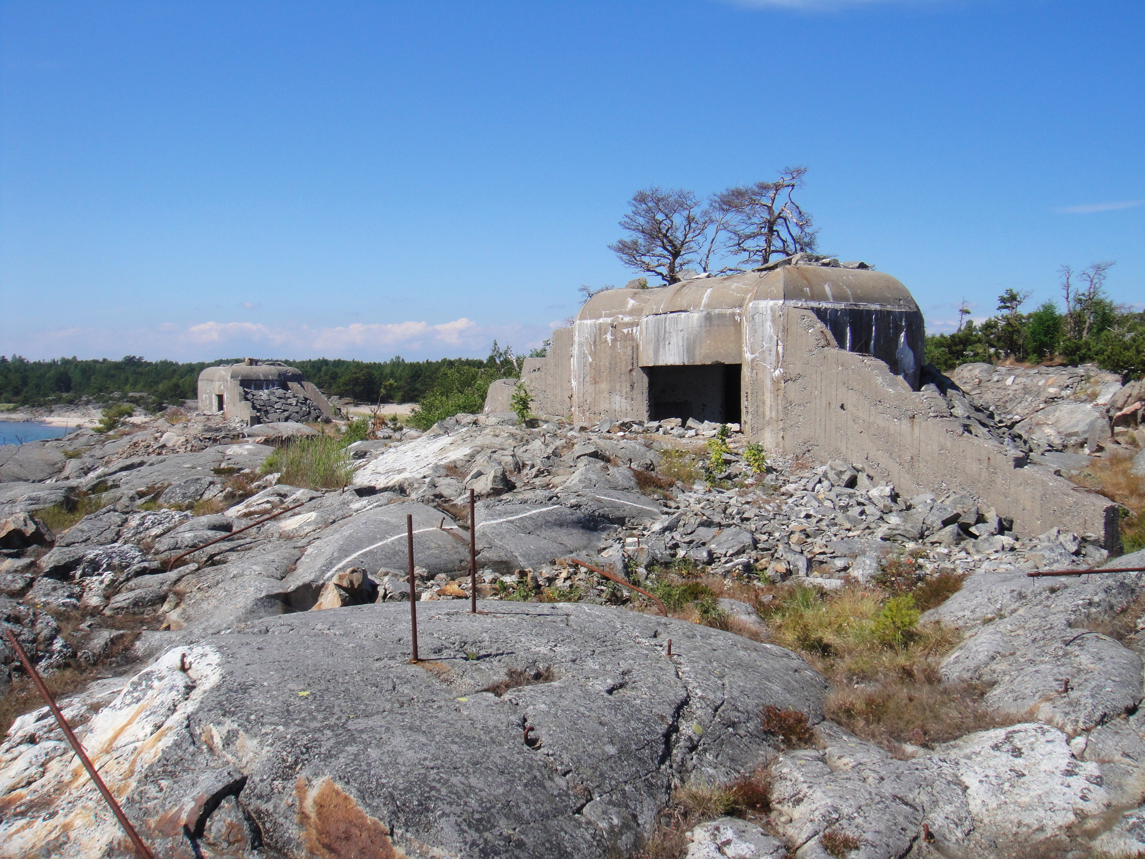 A view down Utö Island showing the more overt string of bunkers lining the coastline:
