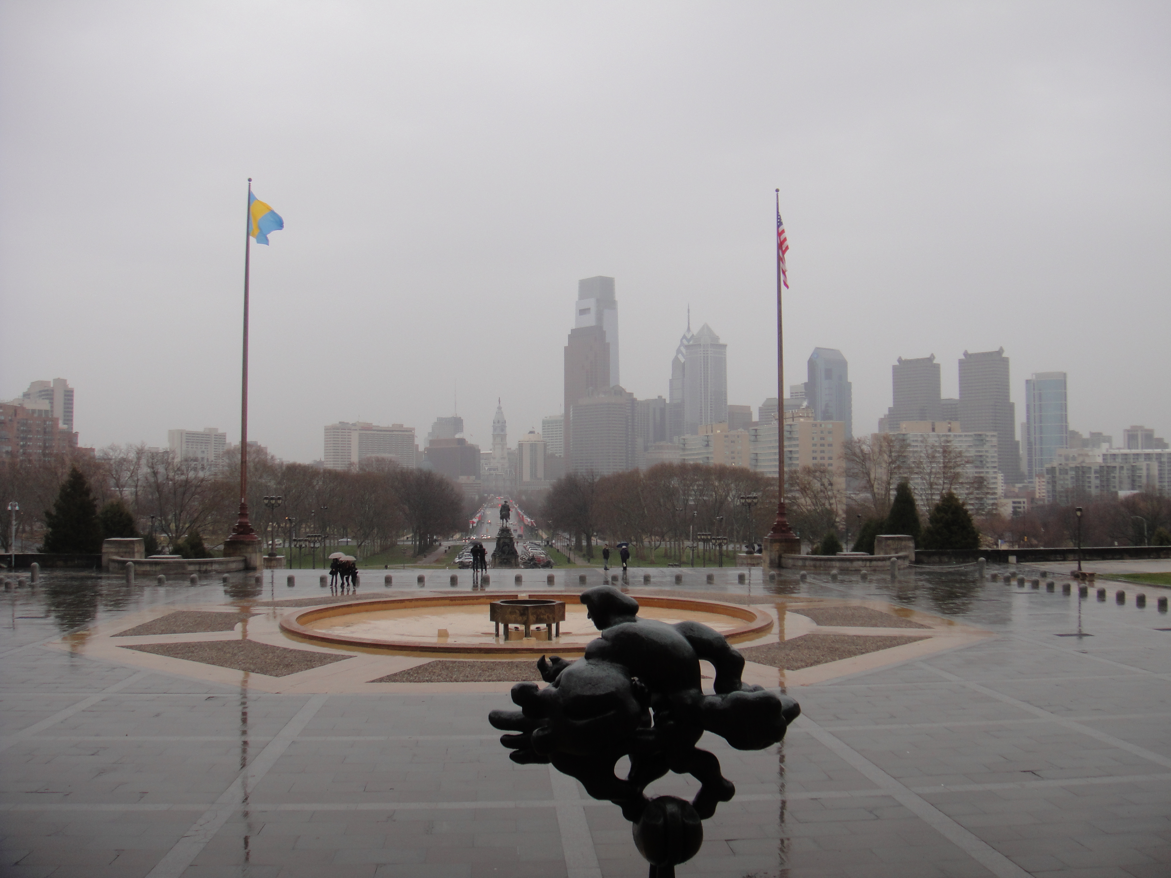 The view out toward downtown Philadelphia from the steps of the Philadelphia Museum of Art:
