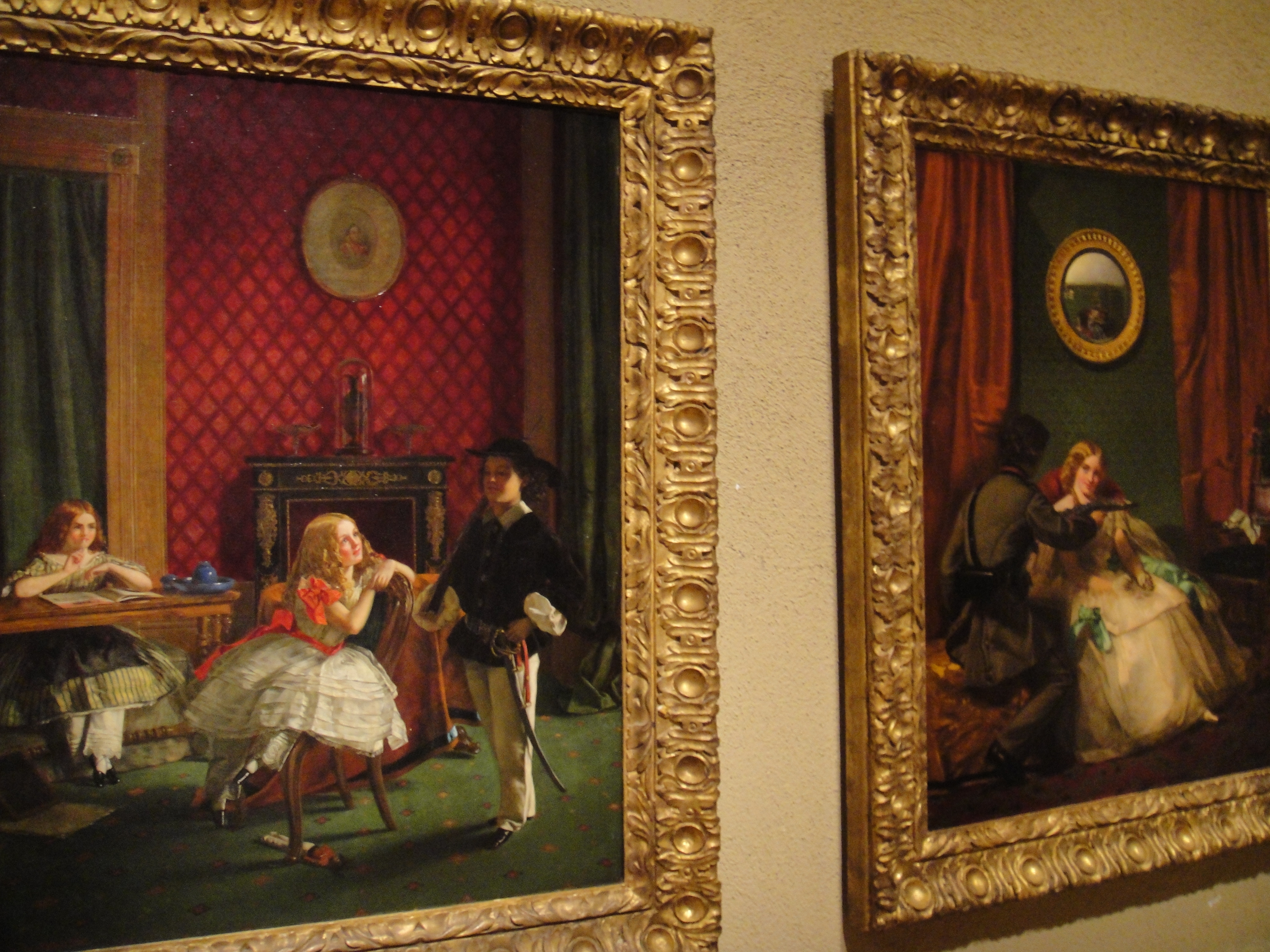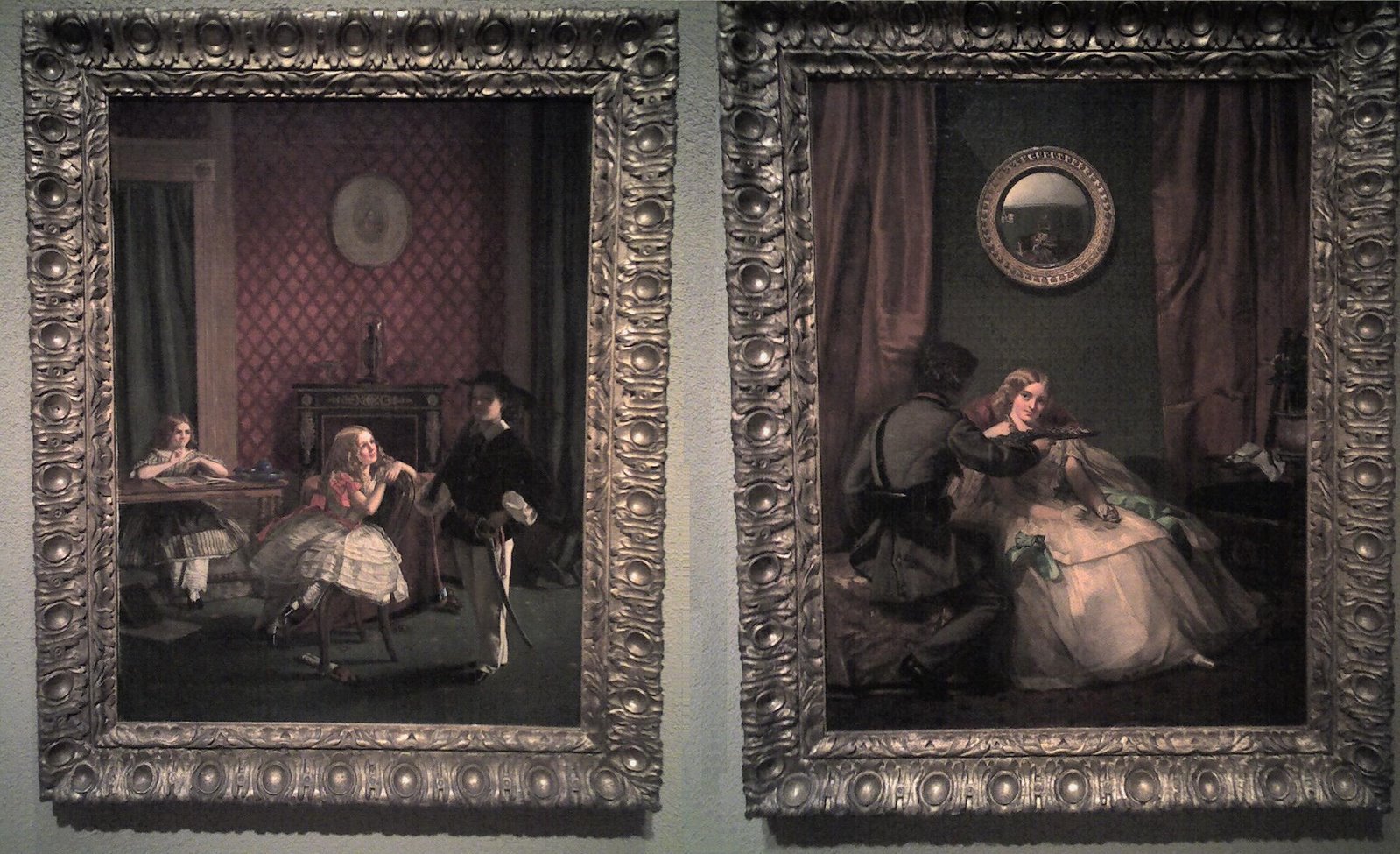 Below is a digitally cropped photo of the two paintings so they appear alongside each other (and allow my dear readers a better view of the scene). You can get a better view of the paintings by clicking on the image (note the facial expressions of the girls):