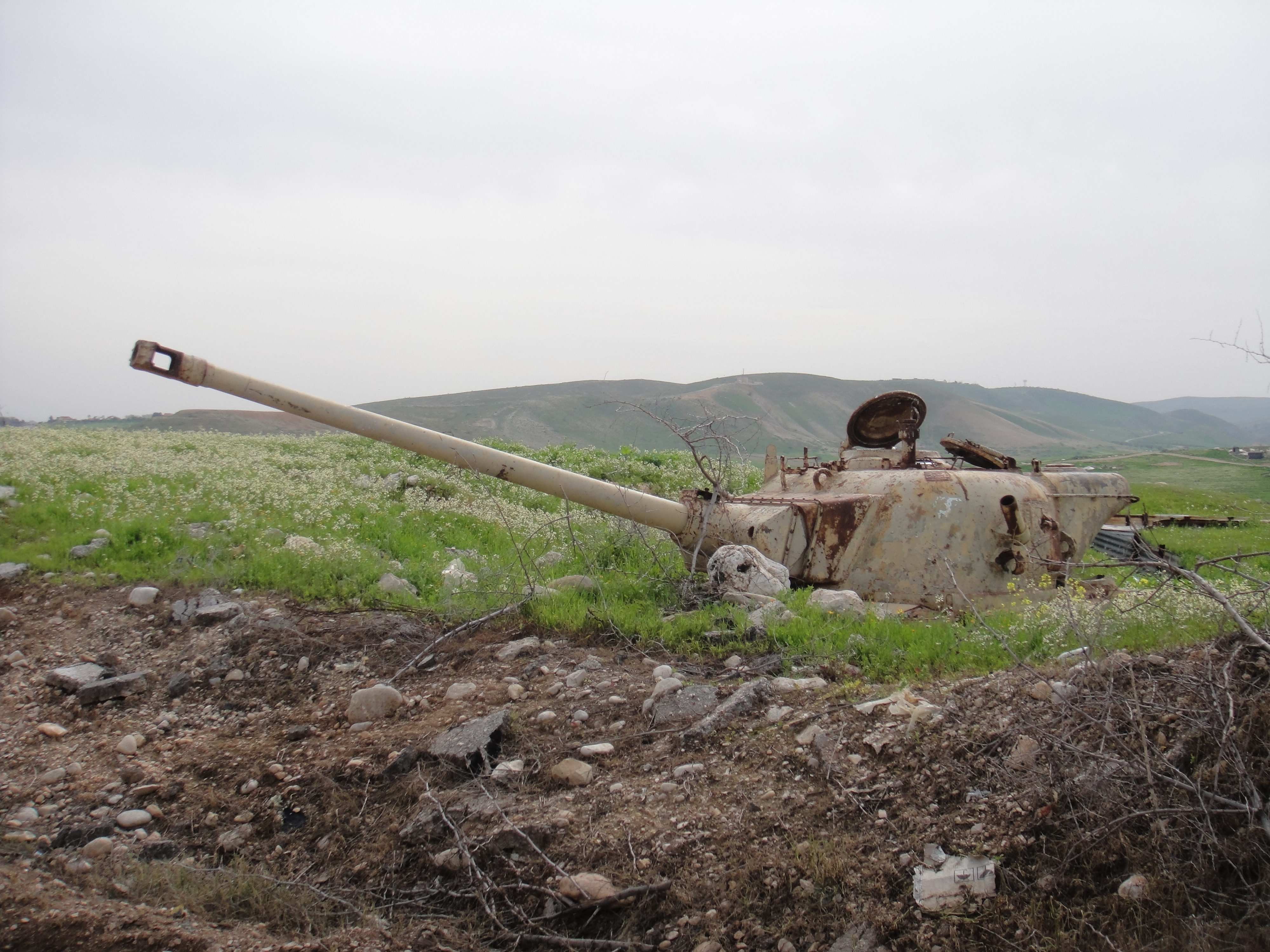 A tank destroyed in the 1967 War that still rests along Route 90: