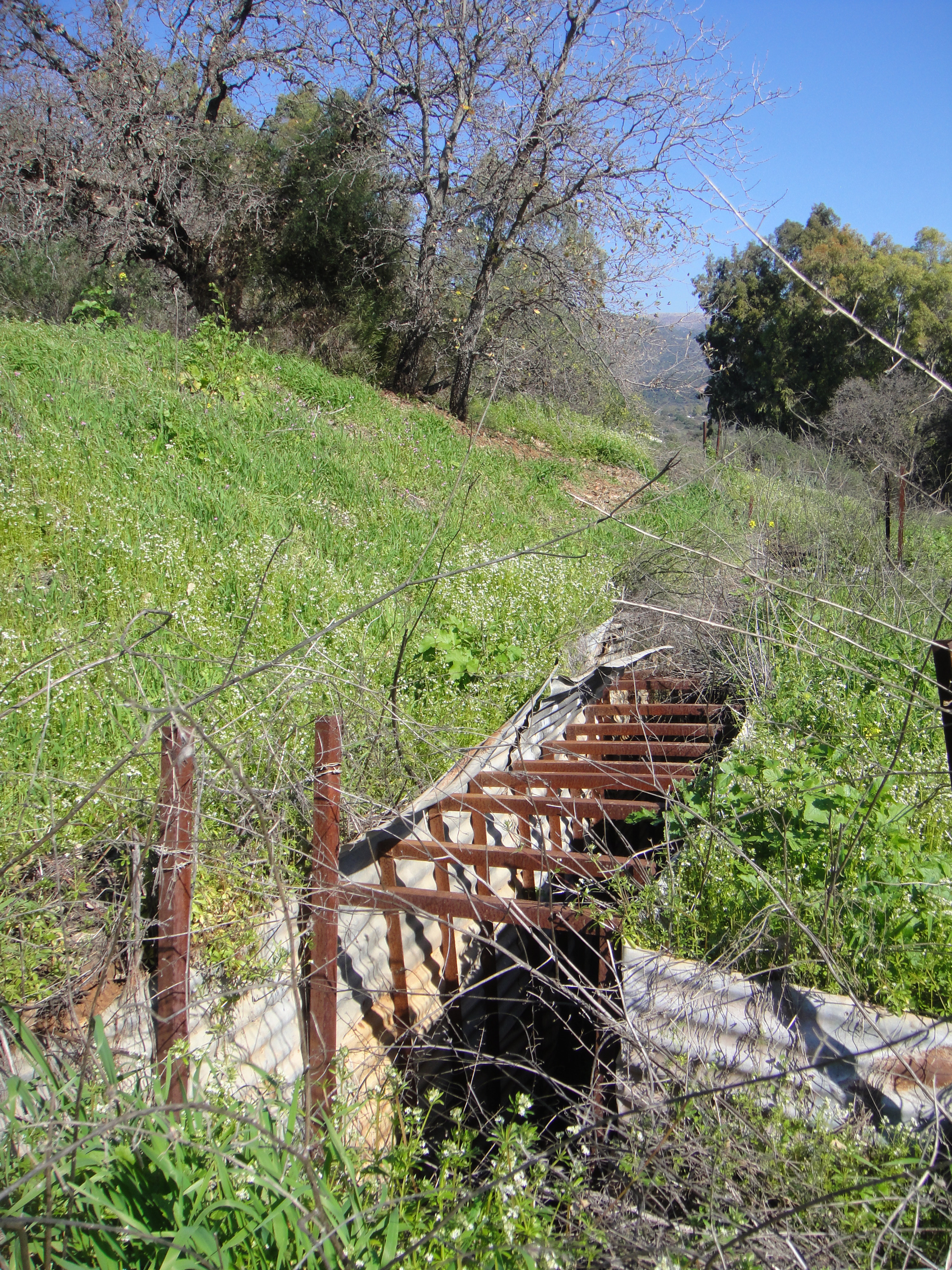 Illustrative of the militarization of the Golan Heights, just a few hundred meters away from the Tel Dan Post Outlook I discovered another set of fortifications – this one further along in the process of being consumed by nature…
