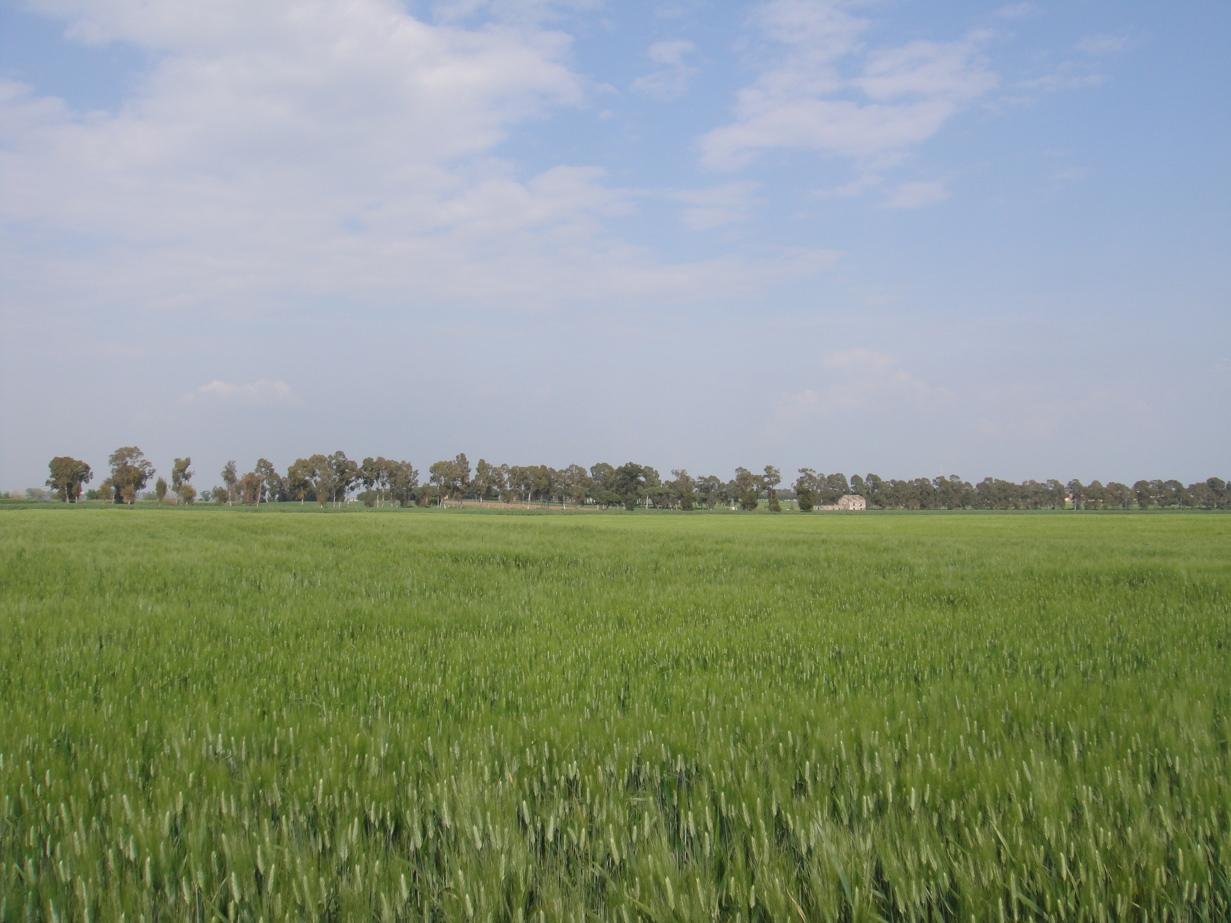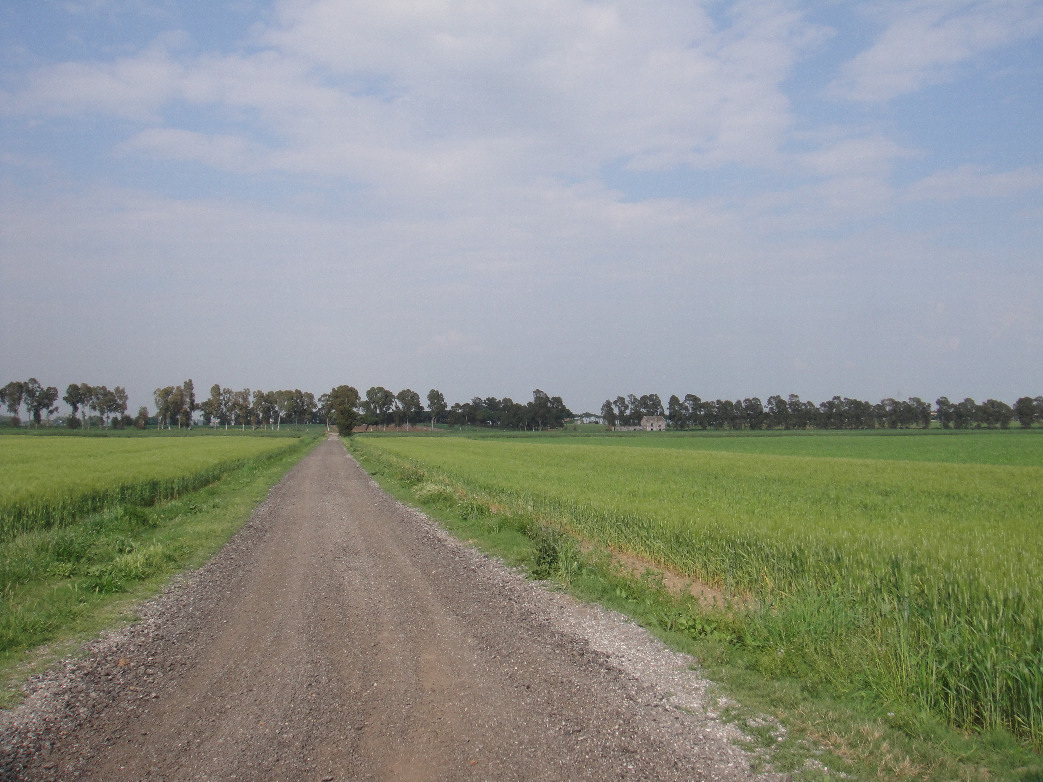 A road leading through the fields to the safe house (visible in the distance to the right):