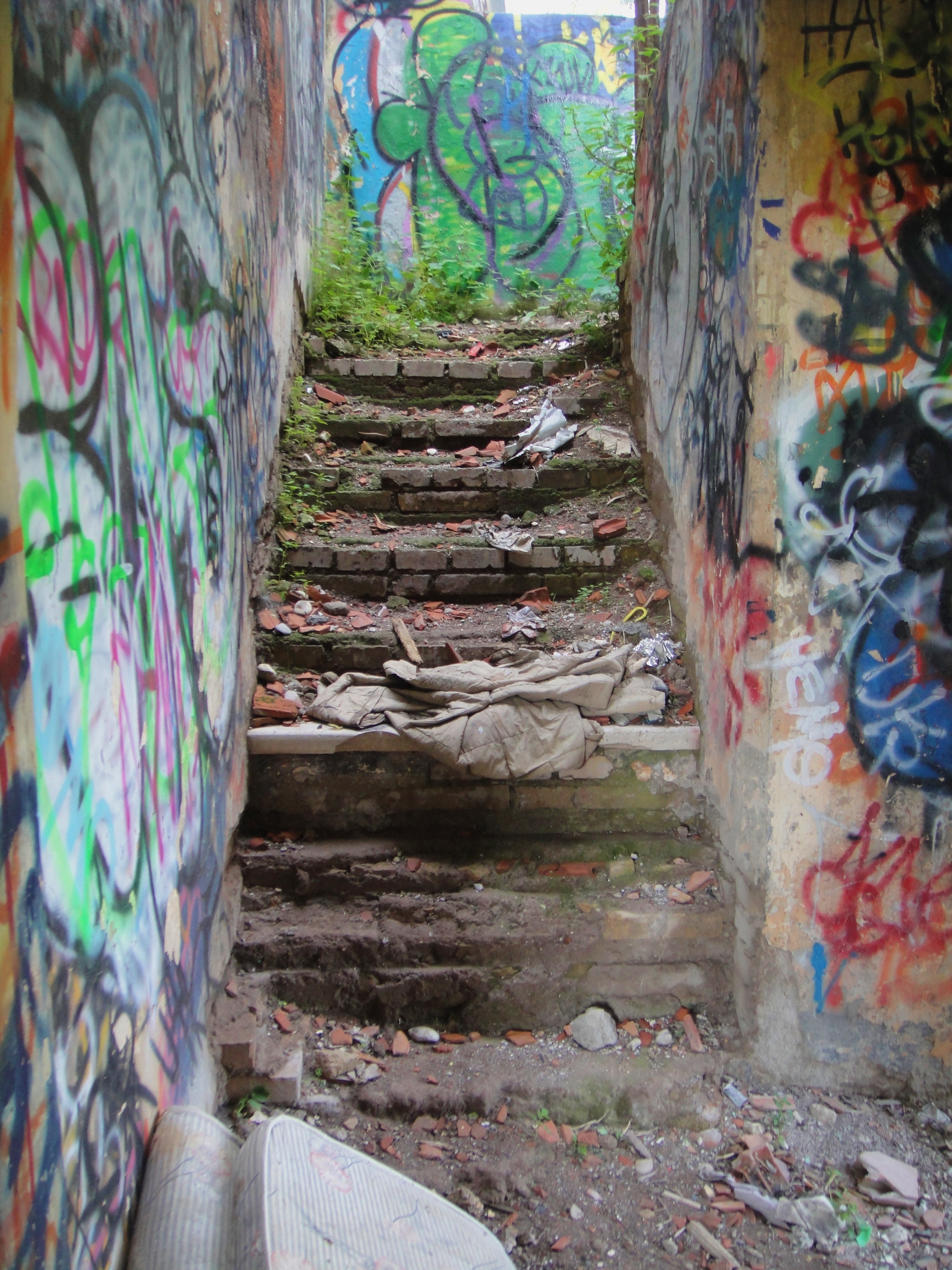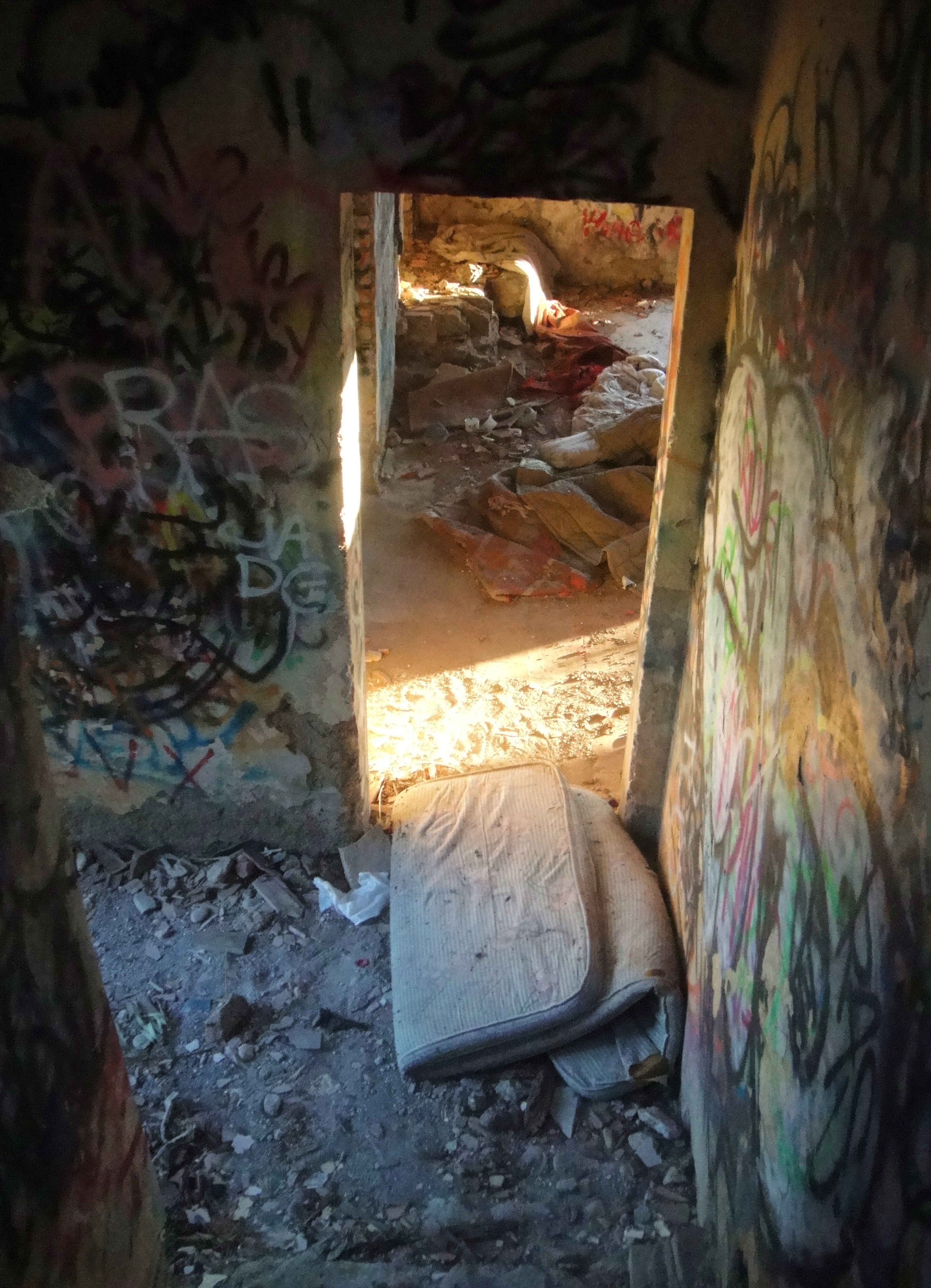 These days The Partisans’ Home gets little respect despite its heroic and historically significant pedigree. Instead, it is a place for kids to drink and get high, away from intrusive adults, and judging from the tattered mattress inside, it has, at times, served as a shelter for those in need of a temporary home. The remains of a fireplace in the corner: