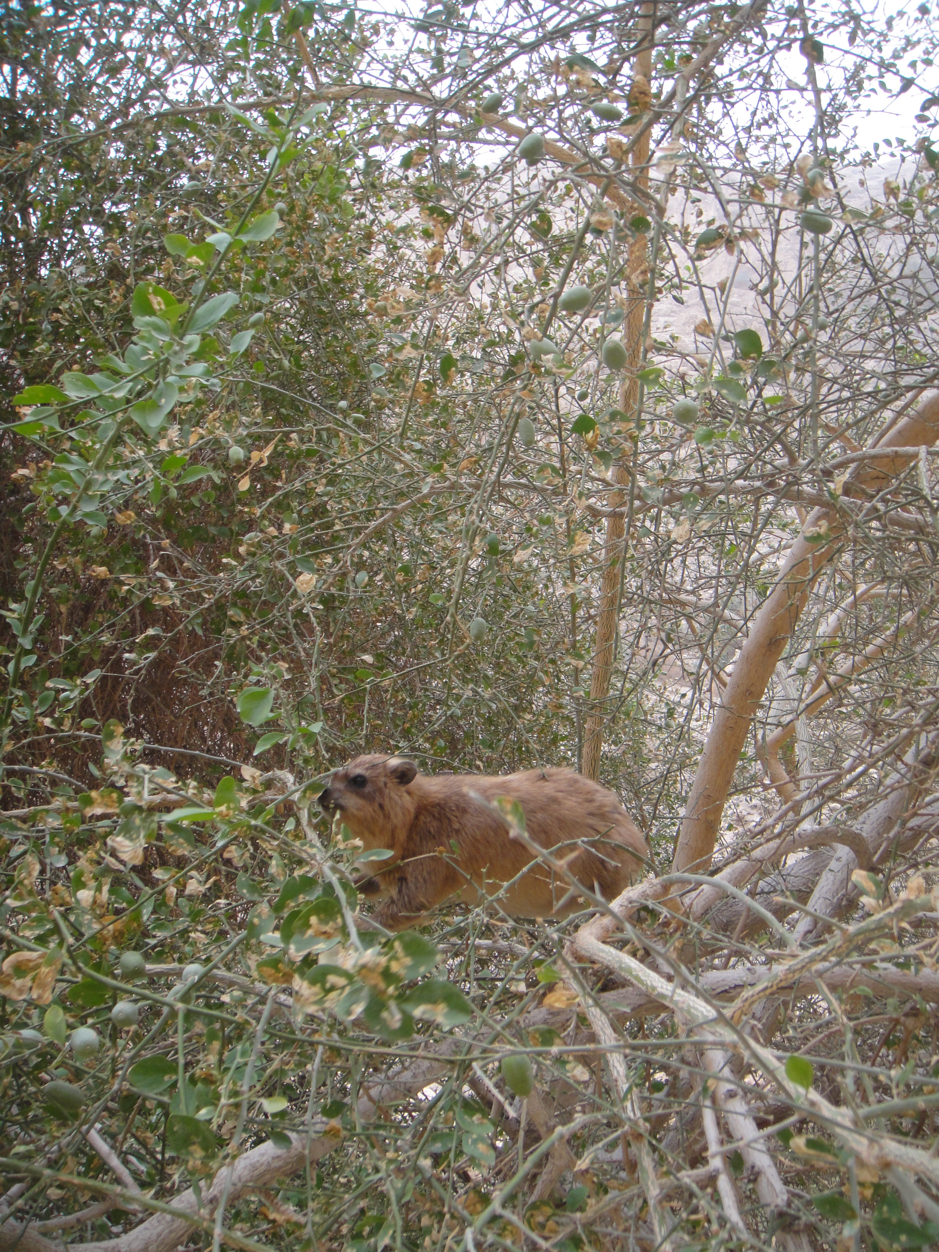 As Ein Gedi’s waters are concentrated in a small area, the wildlife is forced to concentrate in this small area as well. The result is that everywhere one looks, a wild animal will almost certainly be on display. These rock hyraxes, such as this one feeding in a tree, are probably the most common fauna in the area:
