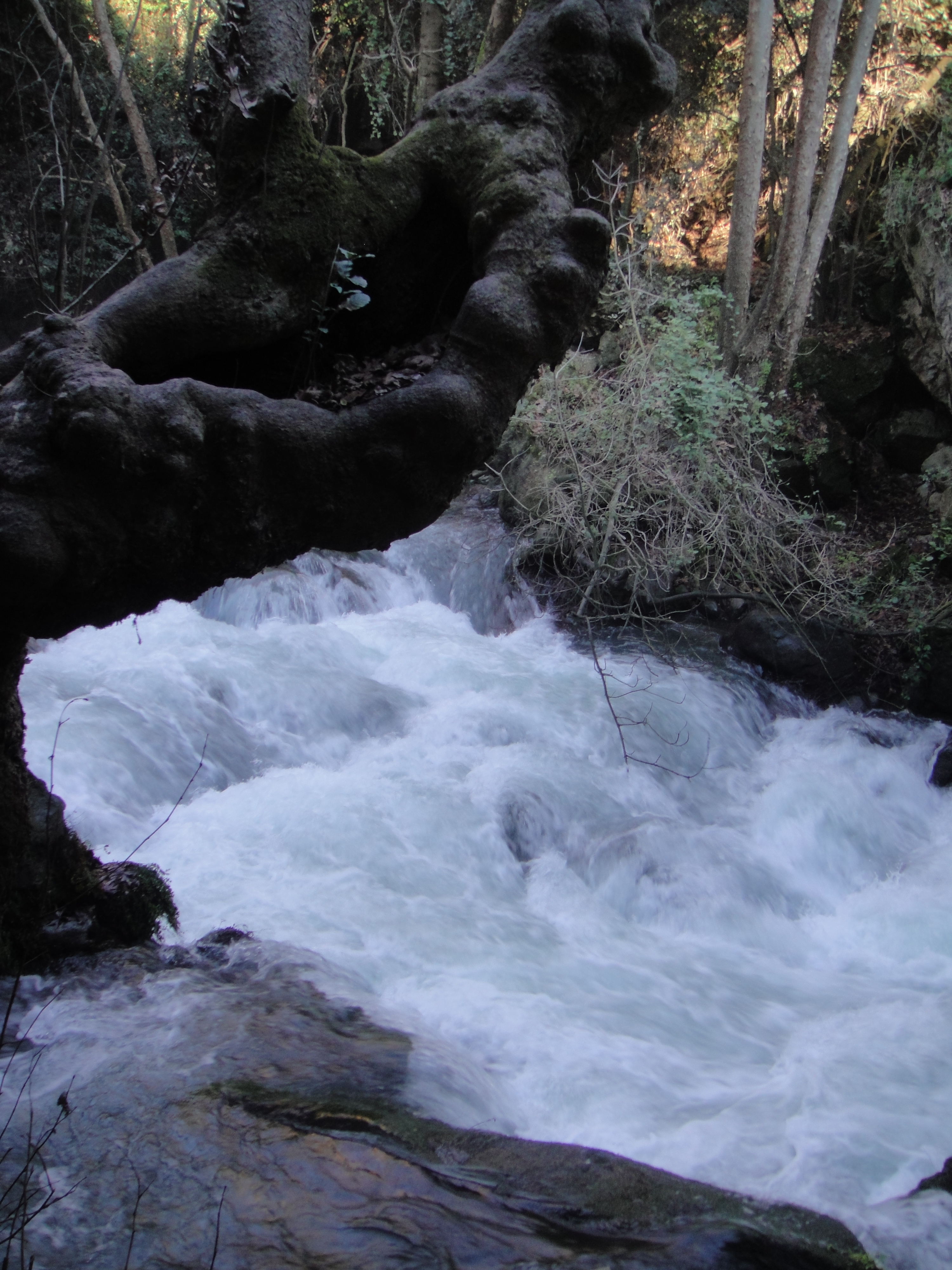 The water flowing downstream from the waterfall… Trees down in the forest along the banks of the Hermon Stream include Mount Tabor oaks, Kermes oaks, Syrian ash, oriental plane trees and willows.
