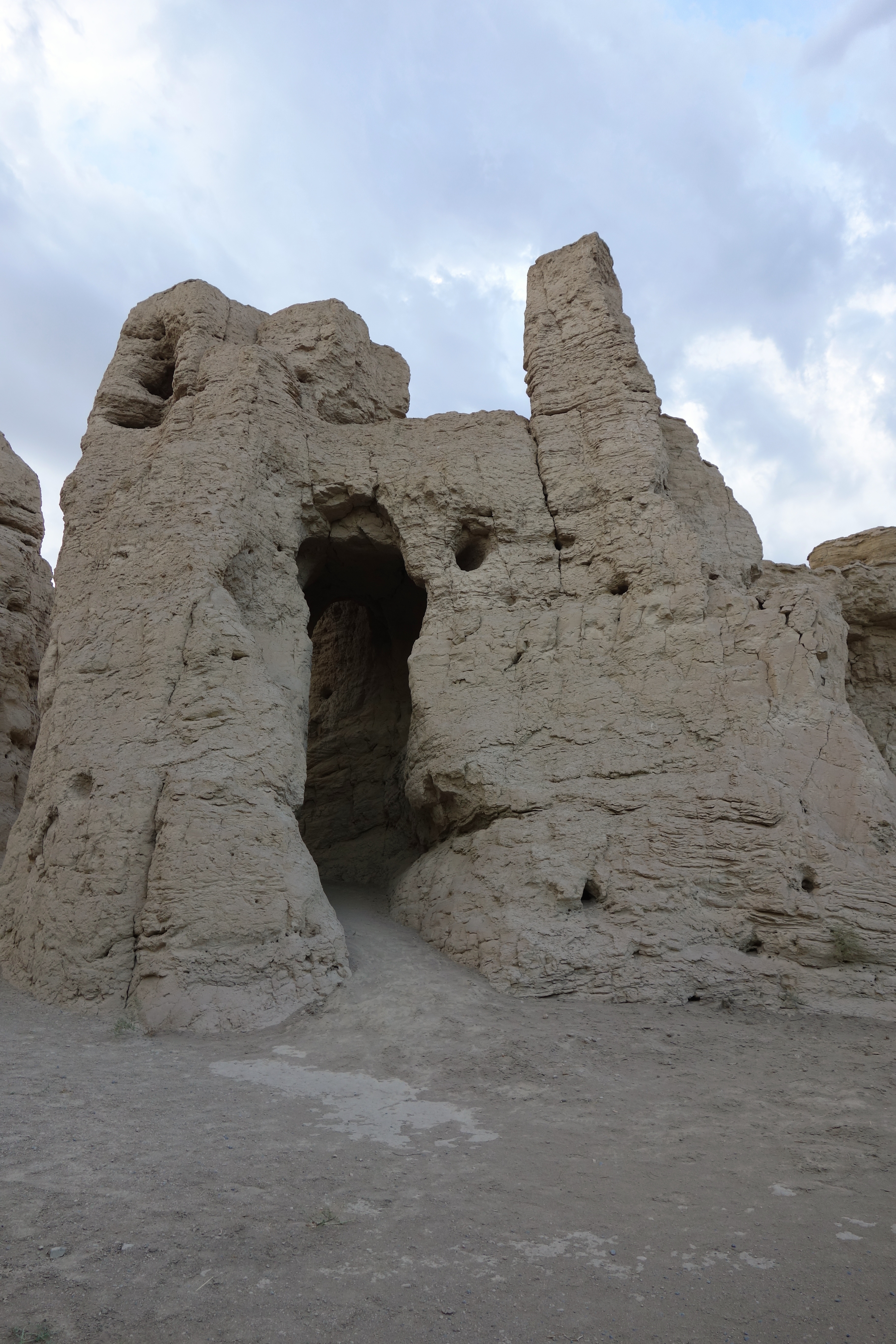 Unlike most ancient cities, Jiaohe had no high walls surrounding it for protection against invaders. They were not needed because the island itself is surrounded on all sides by steep cliffs. And so the inhabitants simply carved two gates into the sandstone to provide (well-guarded) entrances to the city.