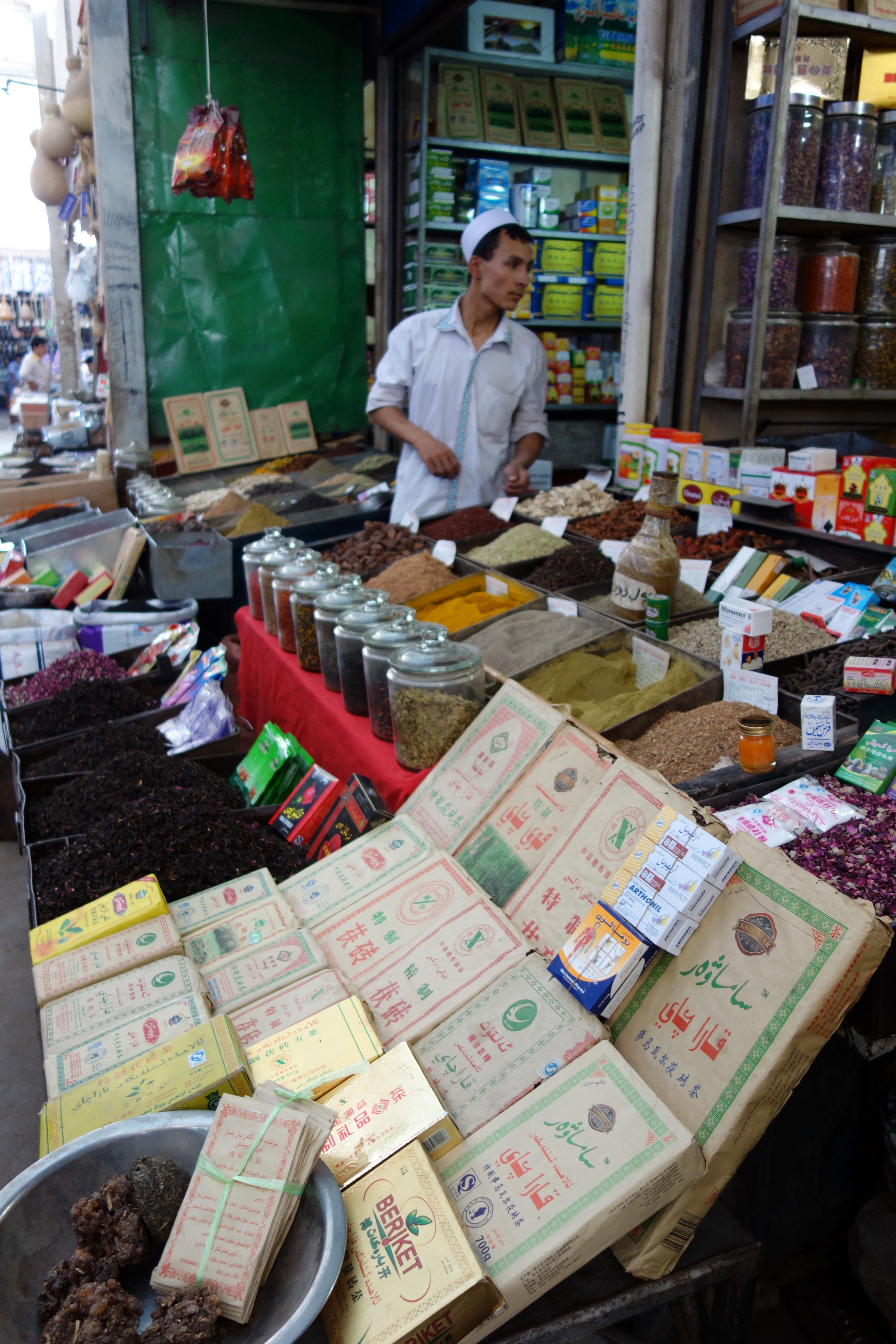 A Uighur spice dealer in the section of the bazaar that focuses on spices: