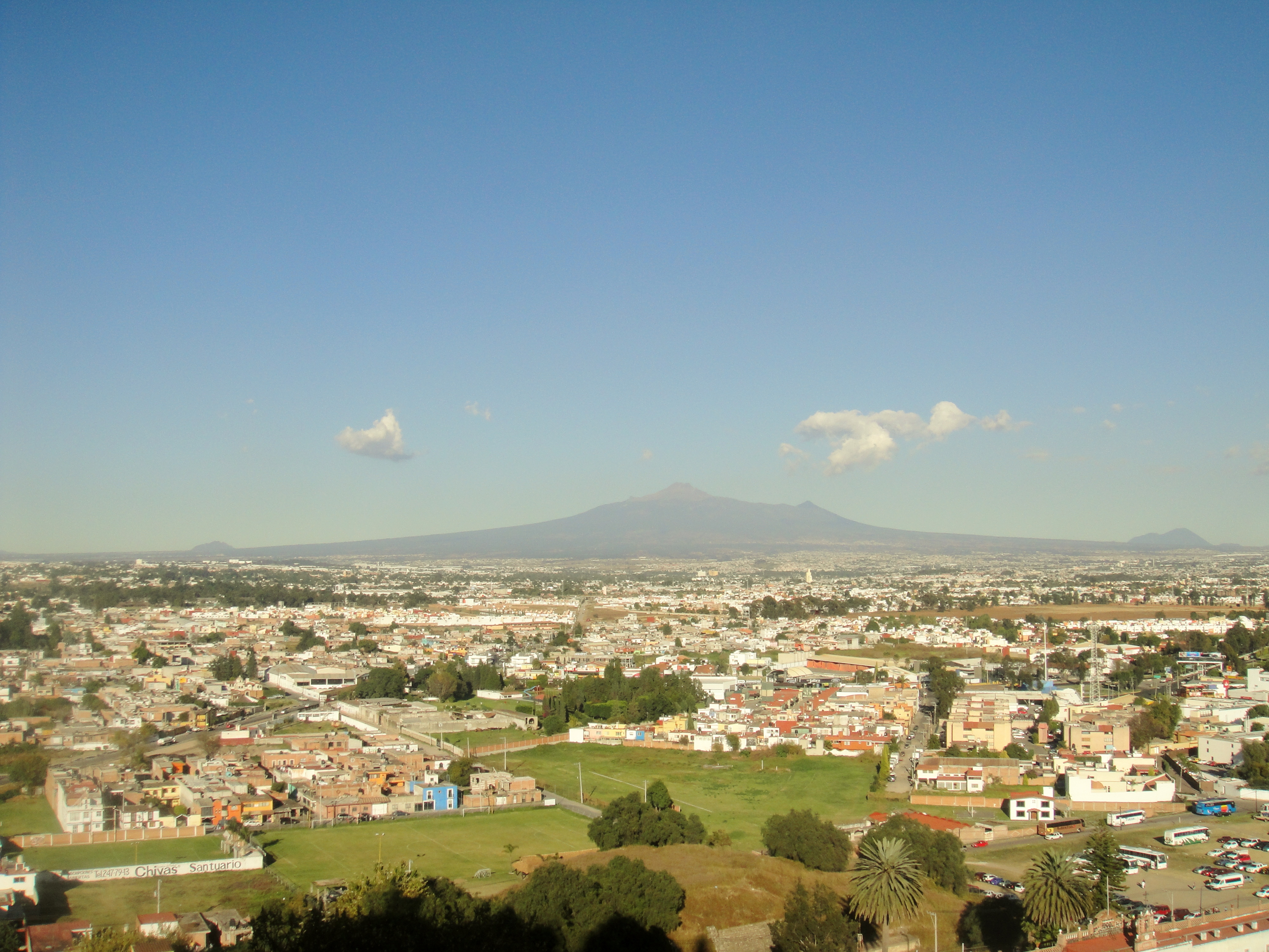 The Great Pyramid of Cholula is visible from some parts of the city:
