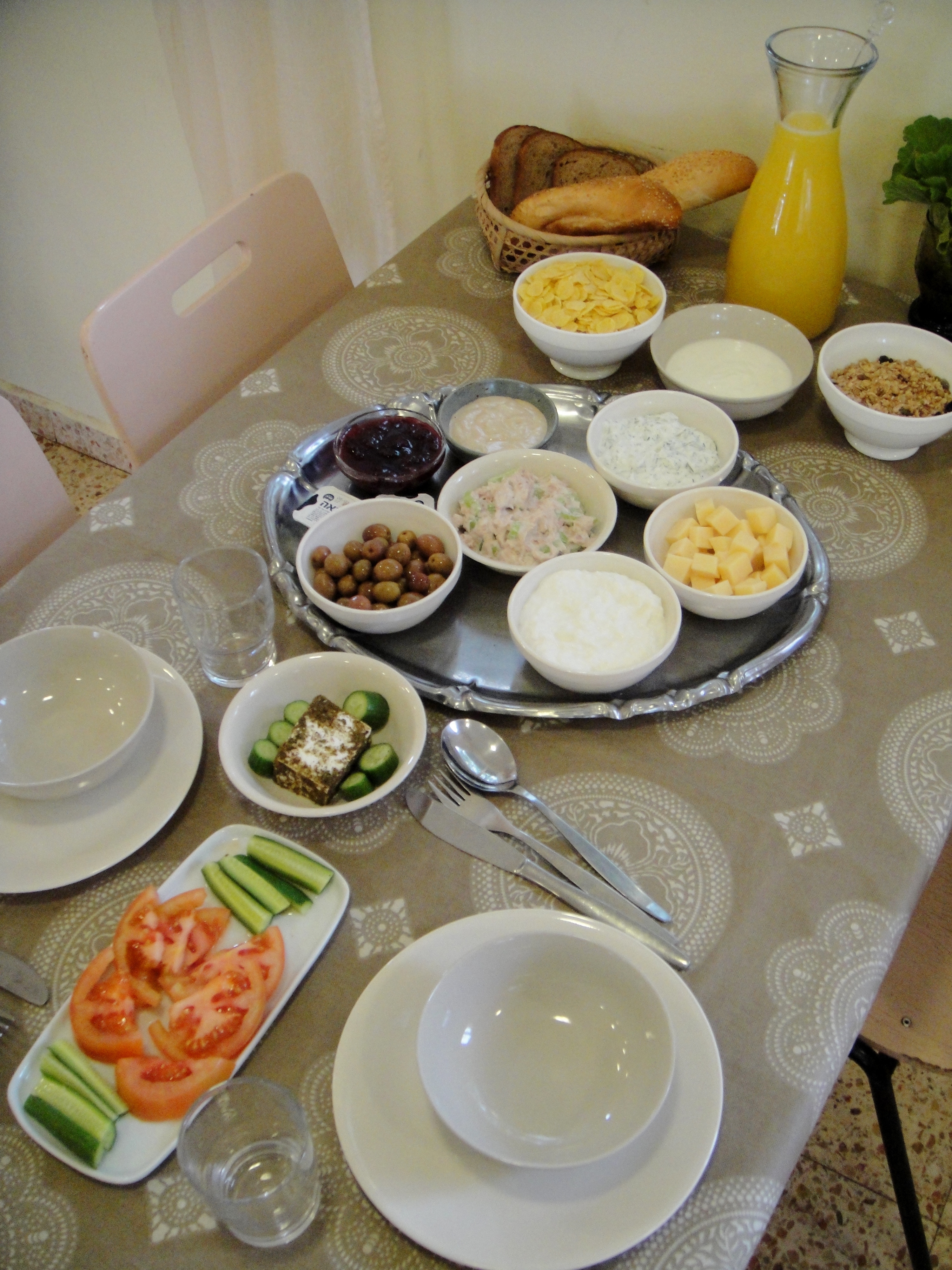 Breakfast at the kibbutz… Some of this delicious food can be sourced from Kibbutz Inbar itself: