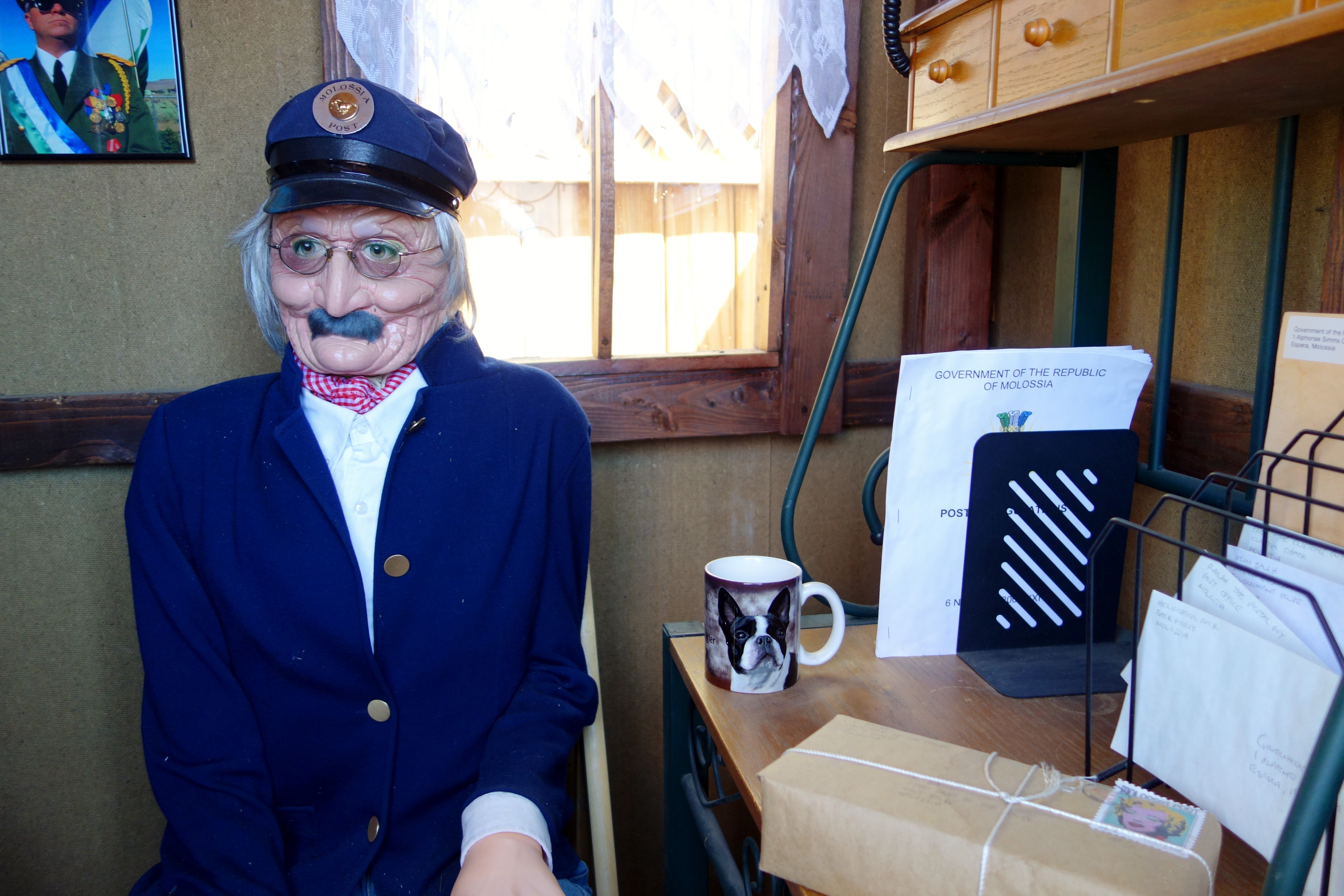 As is customary when entering any foreign country, to enter Molossia, one must first past through customs. The border post is manned by Fred, but His Excellency, President Kevin Baugh himself will kindly stamp your passport for you.