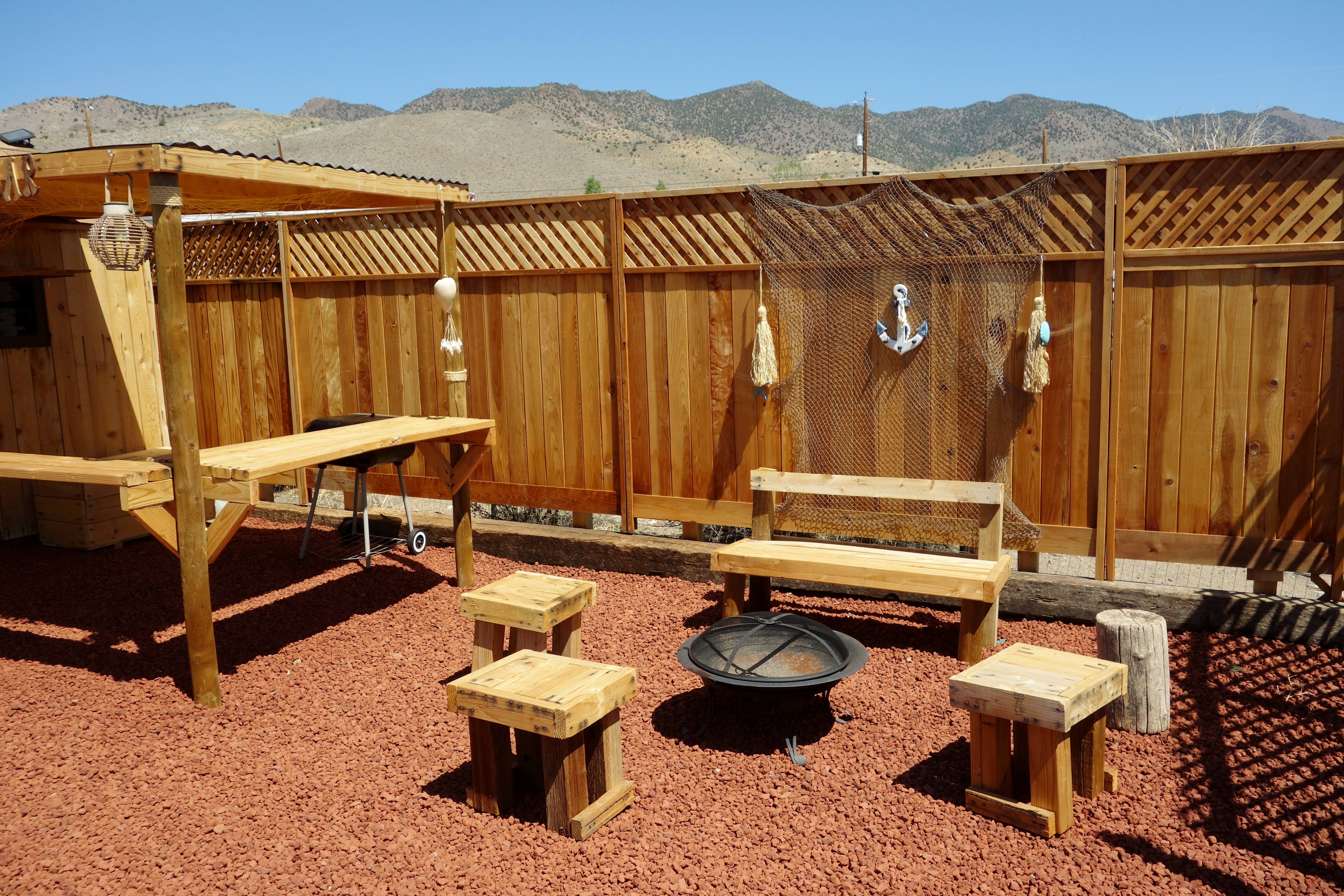 Across Red Square from the Tiki Hut is Molossia’s Water Tower (the structure to the right):