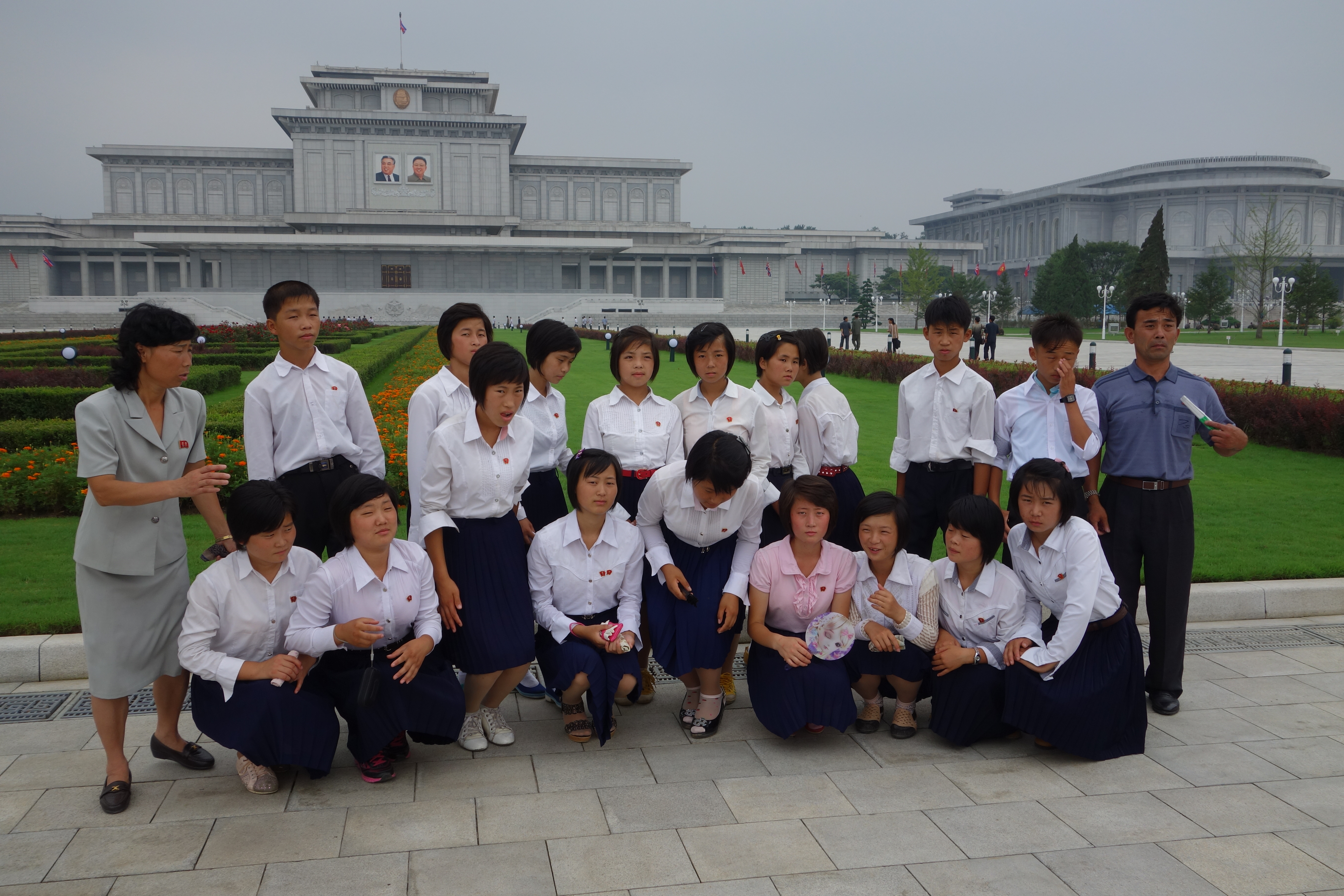 It’s something pretty special for North Koreans to have their picture taken in front of the palace and so there is an endless lineup of school groups and military units waiting for their chance to occupy the prime spot in front for a portrait. It’s entertaining to watch…