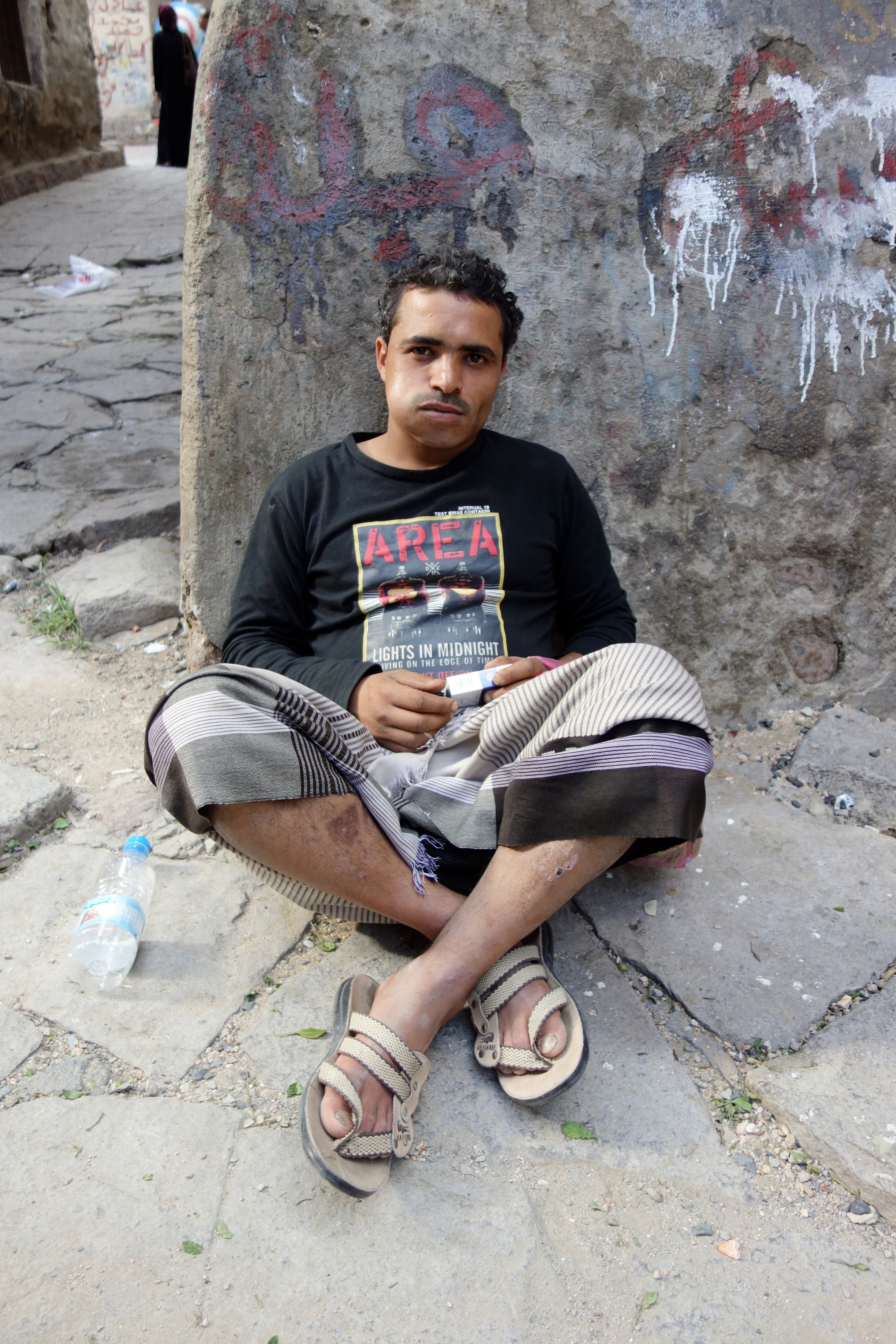 Another man nearby that was likewise sprawled out in the street to enjoy his khat… Khat is extremely popular in Yemen and by the late afternoon, most of the men one will see – and even young boys – will have the characteristic bulging cheek: