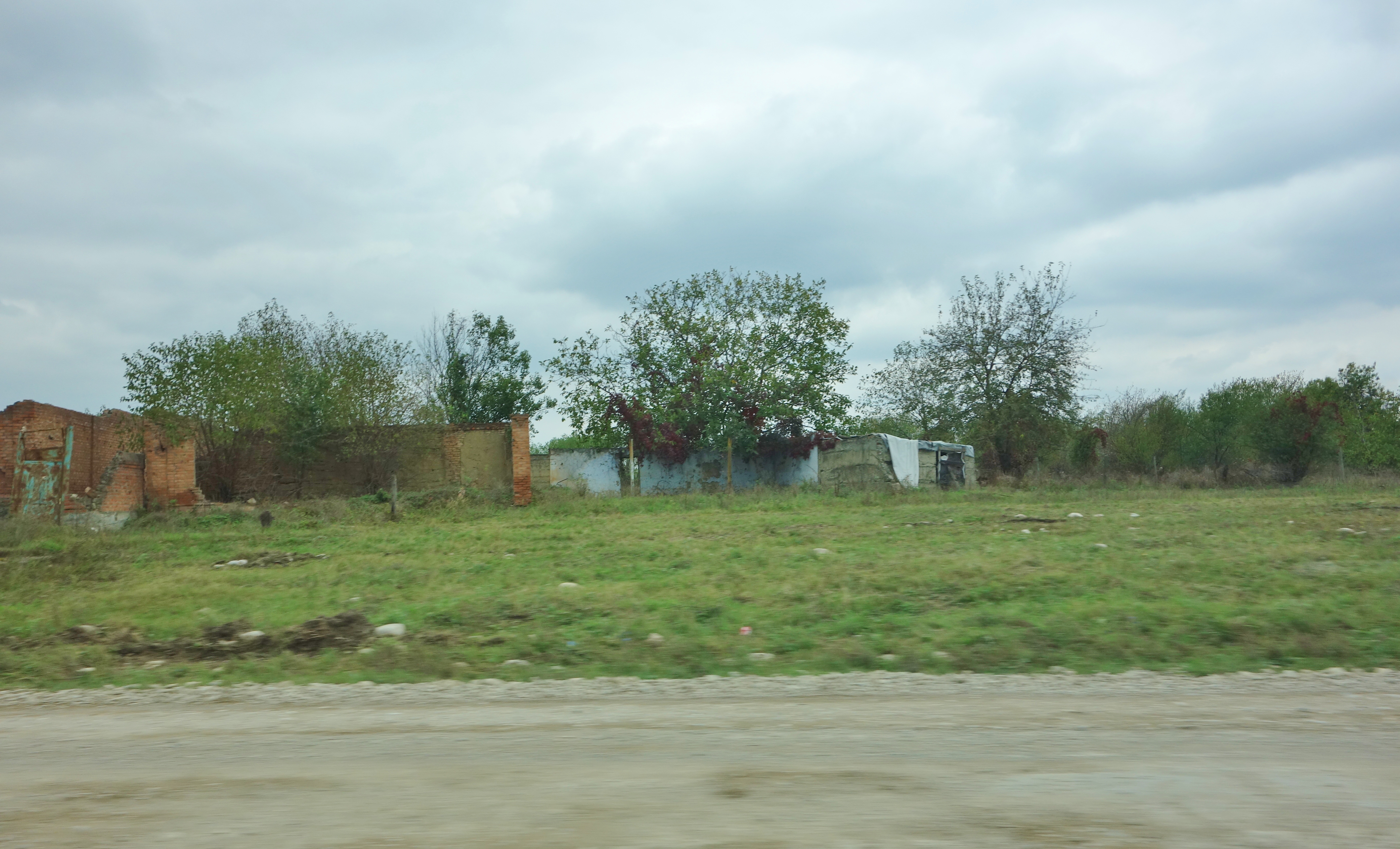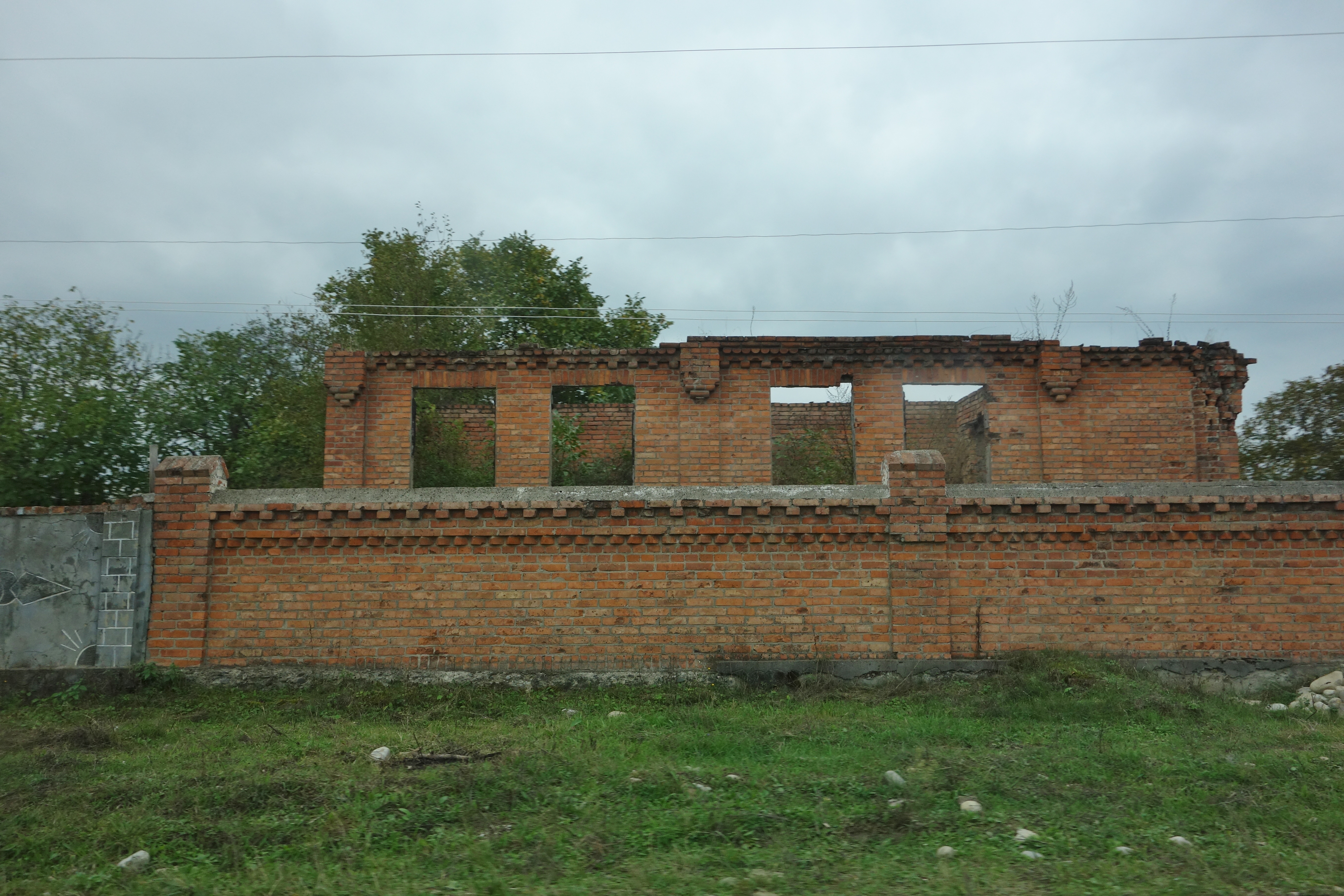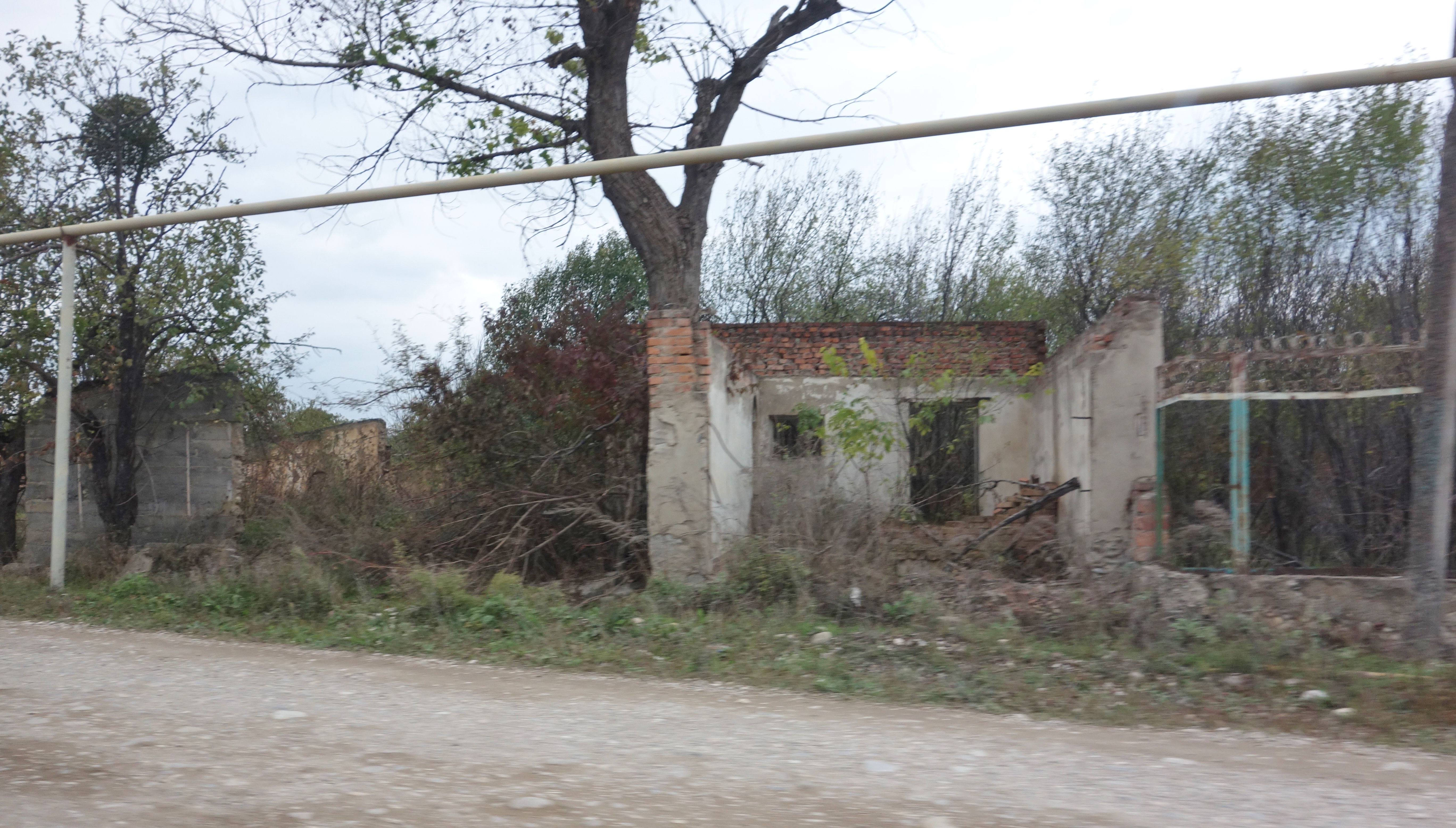 A few homes have been rebuilt around the center and so one can see a long line of bombed out houses and then suddenly there will be an intact, modern home. Below is an example of this incongruent experience as we see a destroyed home right next to a rebuilt one: