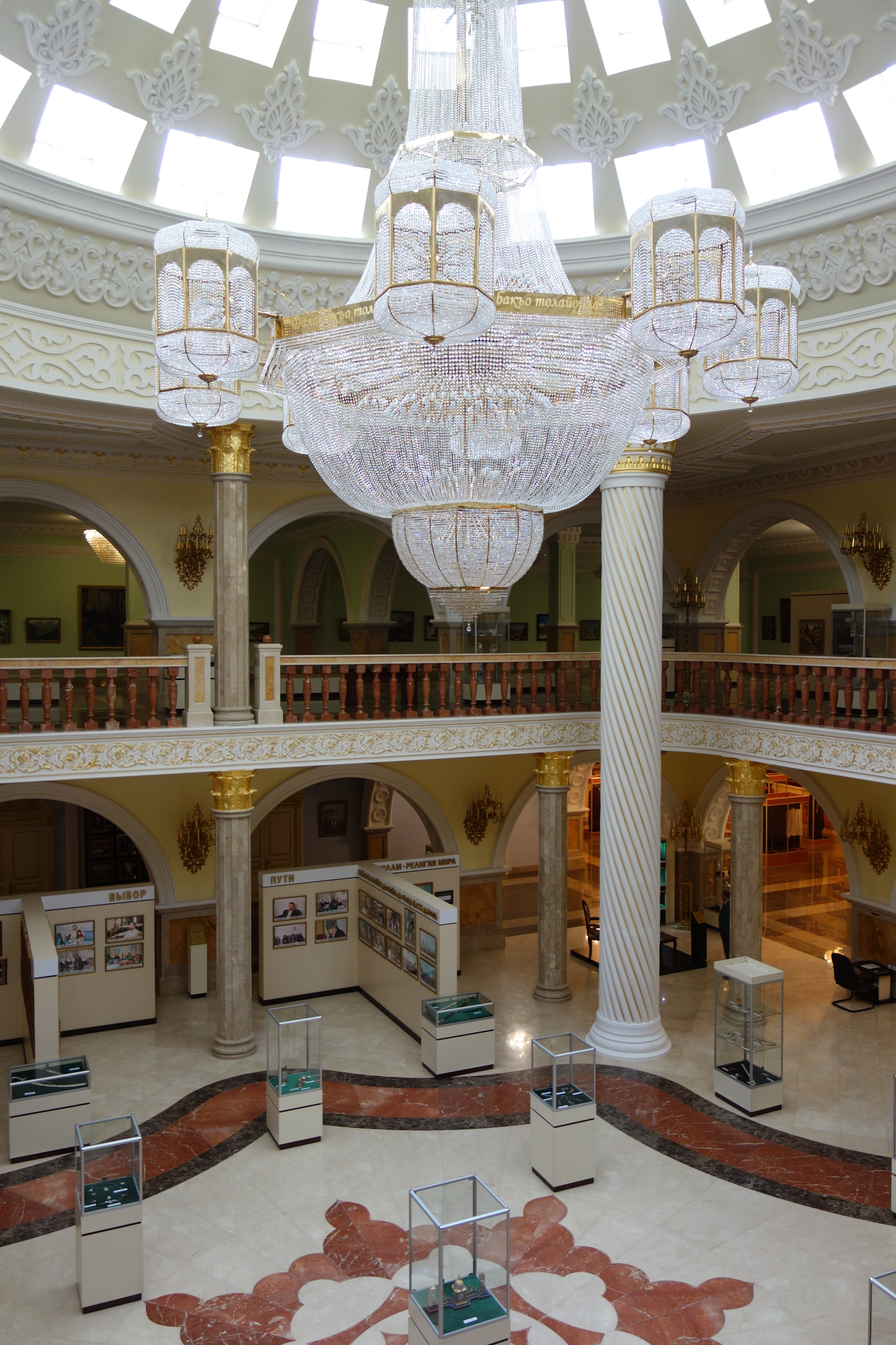 The entrance floor has a small exhibition – at least when we visited – of contemporary paintings, but the real magic is on the lower level. The lower level is essentially a shrine to Akhmad Kadyrov: