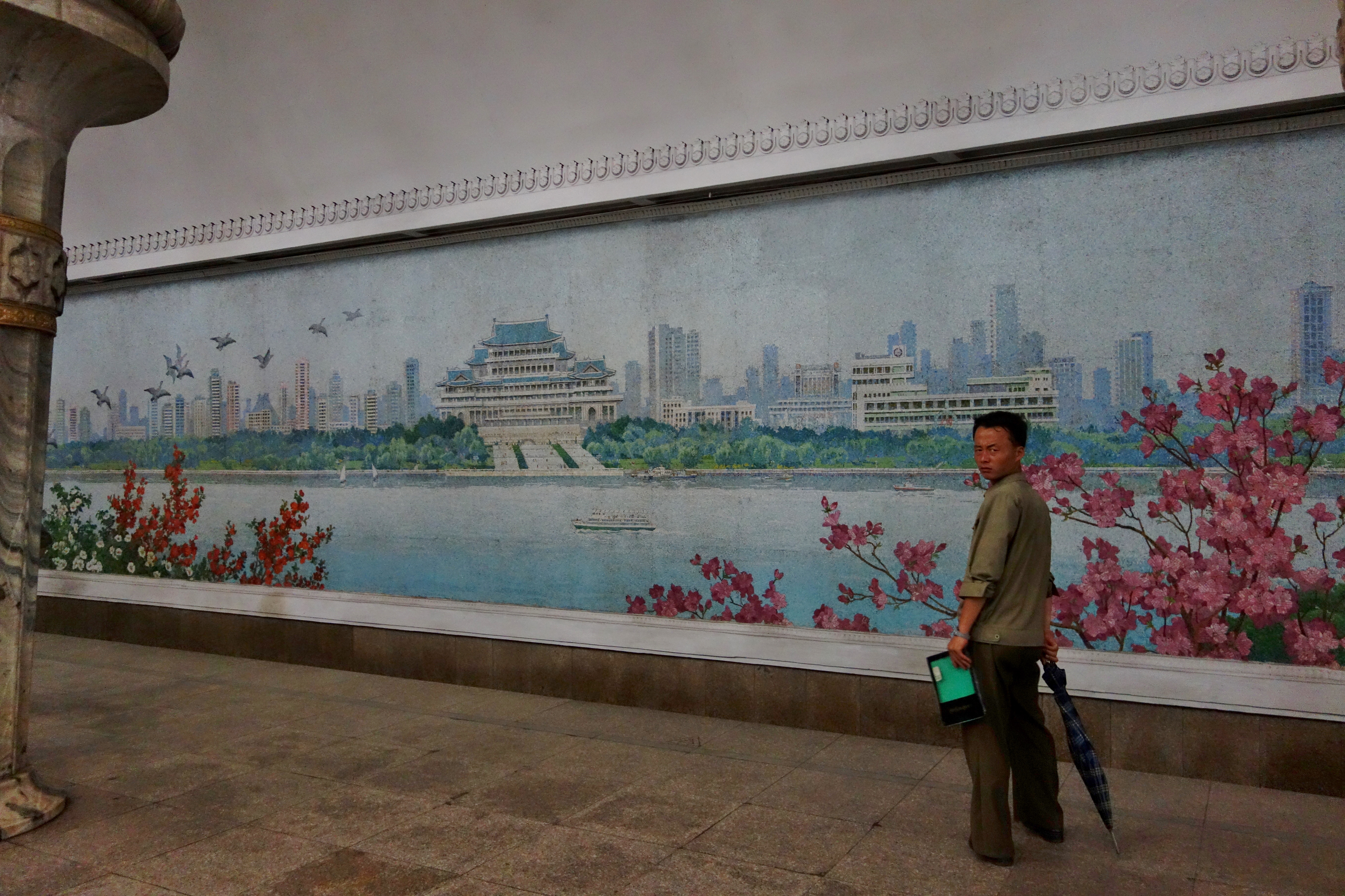 A typical scene in a station on the Pyongyang Metro… In stark contrast to a subway system such as Rome’s or San Francisco’s, the stations are entirely free of graffiti and are remarkably clean: