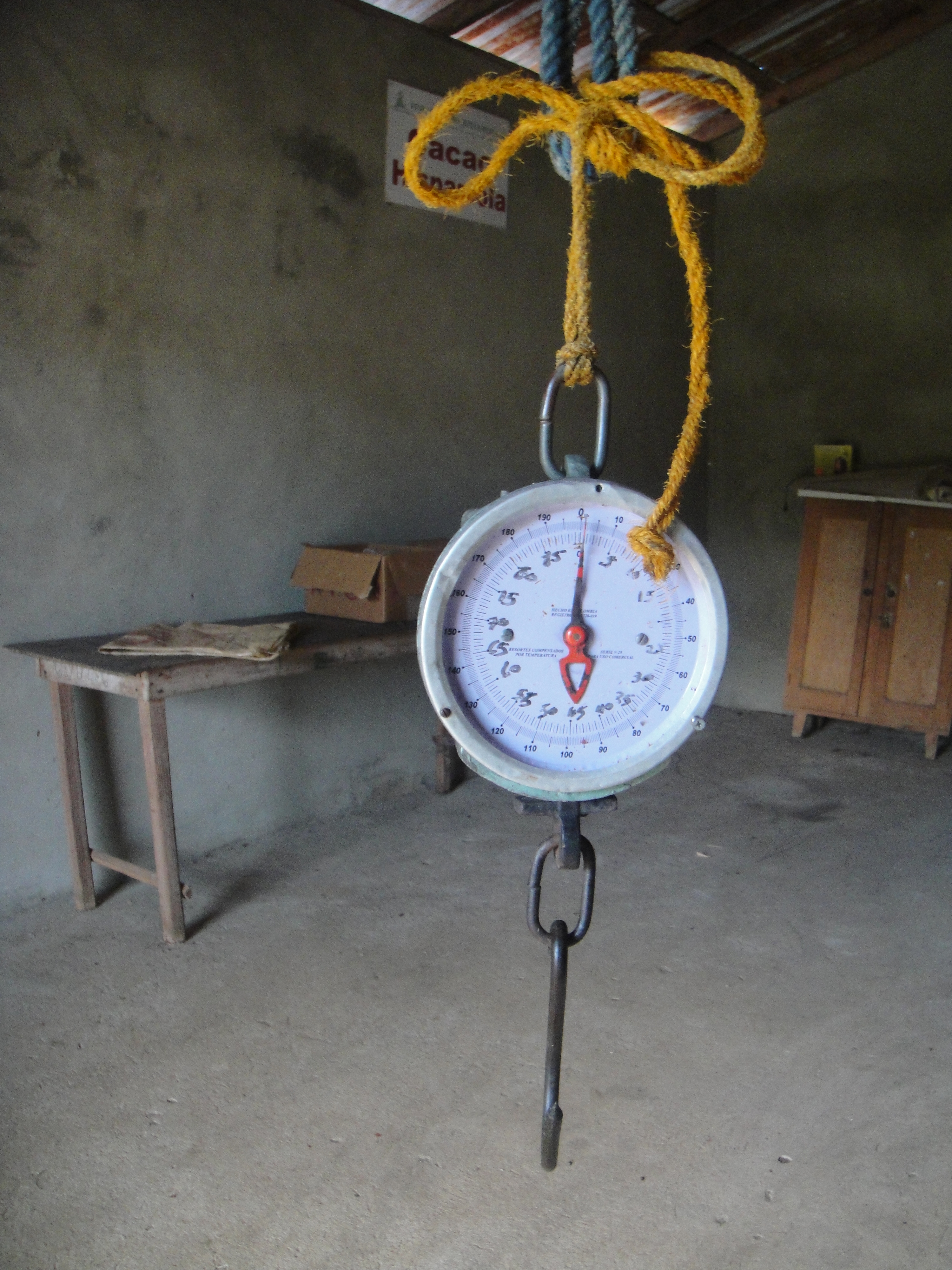 The target weight is 50 pounds per sack of dried cocoa beans. For each 50 pound sack, the farmers (at the time we visited) receive 6,000 Dominican pesos (approximately $133 US dollars).