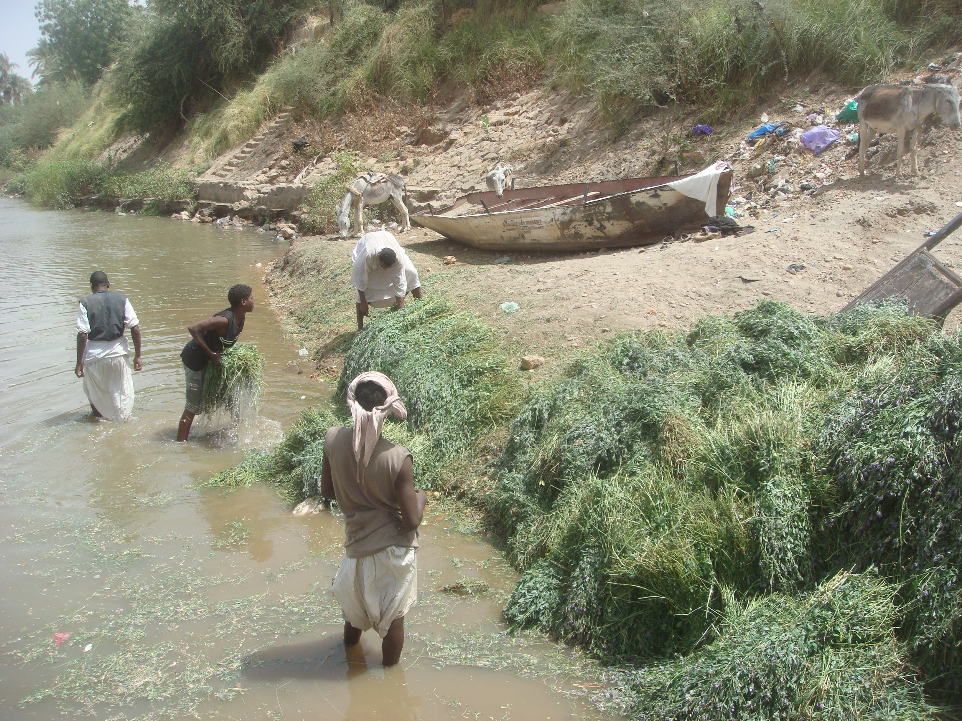 These men harvest a plant that grows along the Nile River and sell it to those with livestock in the arid deserts nearby as feed for their animals: