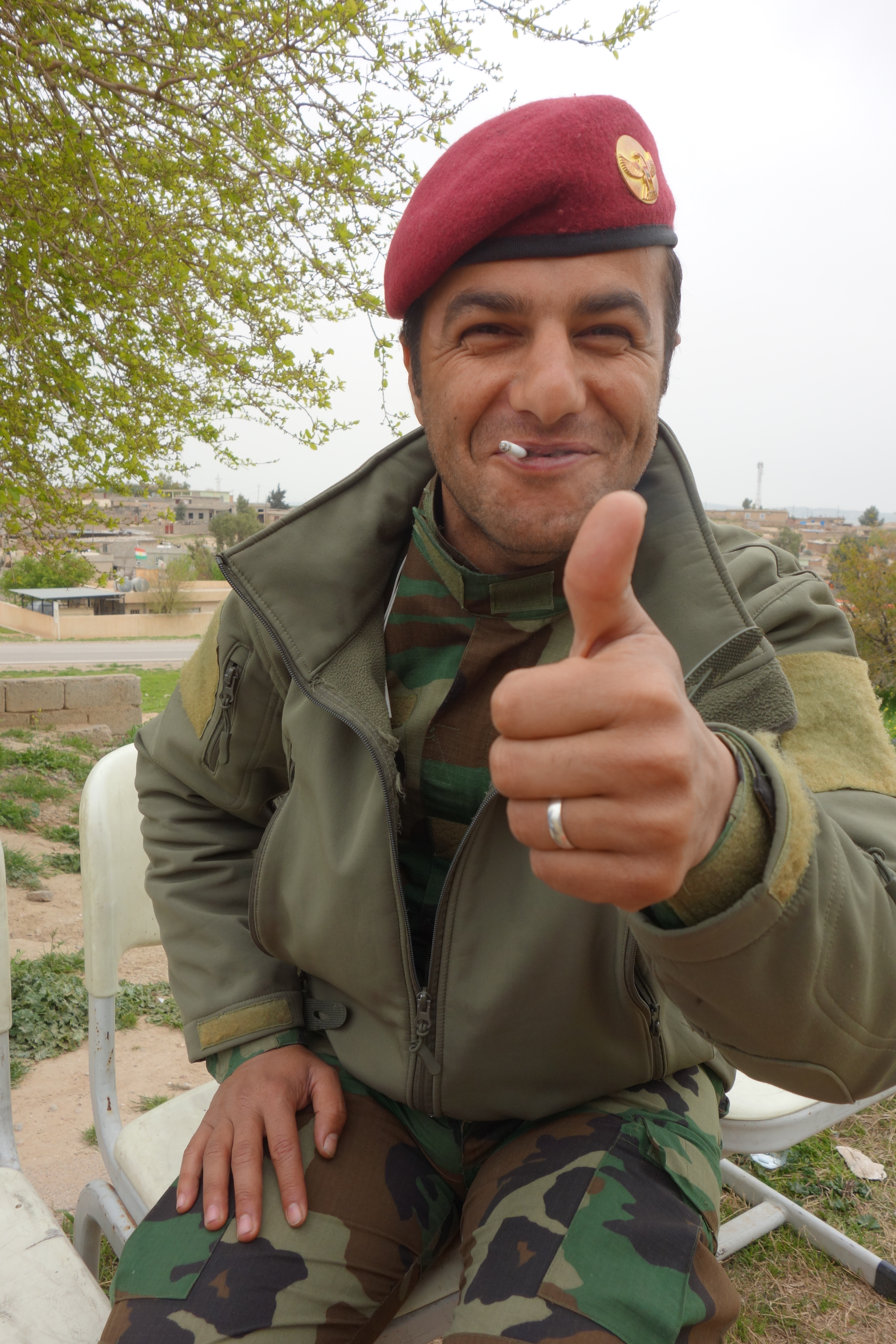 The Hiza Agre Fire Force Unit 80 is a Peshmerga unit holding a front line position on the outskirts of Mosul that is unique in a number of ways. Despite often being compelled to fight with weapons they have been able to capture from ISIS and despite being forced to fight in whatever equipment they can scrape together on their own – one fighter is routinely going into combat wearing bowling shoes – the men and women of this unit have been able to accomplish very much with very little.